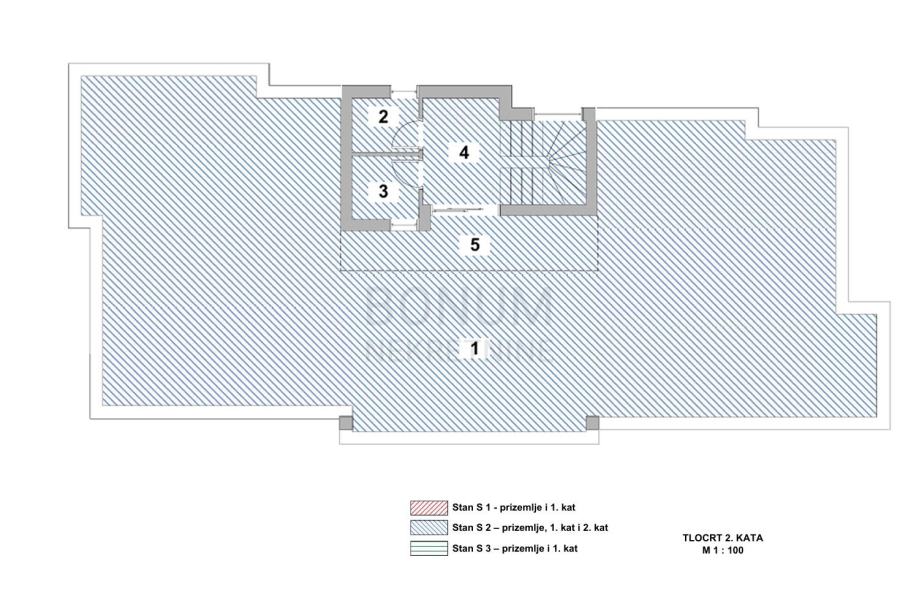 Kuća S3 je dio trojnog objekta i prostire se na dvije etaže — prizemlje i prvi kat — s ukupnom korisnom površinom od 136,48 m². Posebnost ove kuće je vrt površine 35,37 m², popločani prilaz od 50,97 m² te dva parkirna mjesta. U prizemlju se nalazi prostrani dnevni boravak povezan s kuhinjom i blagovaonicom, s izlazom na veliku terasu i vrt, uz modernu kupaonicu. Unutarnje stepenice vode na prvi kat gdje su smješteni hodnik, tri komforne spavaće sobe i dodatna kupaonica. Kuća će biti opremljena protuprovalnim vratima, PVC stolarijom s komarnicima i električnim podizačima roleta, visokokvalitetnim keramičkim podnim oblogama, podnim grijanjem u svim kupaonicama te klima uređajima u dnevnom boravku i svim spavaćim sobama. Osigurane su i instalacije za telefon i internet te satelitska TV.