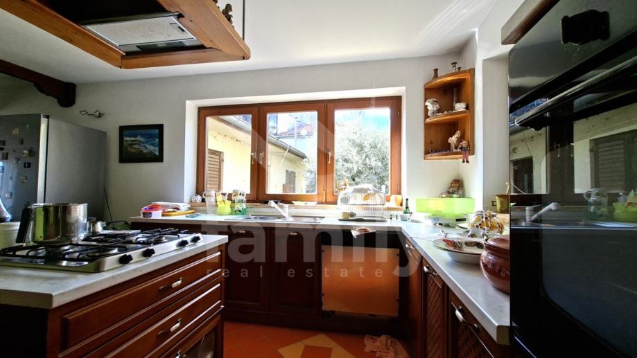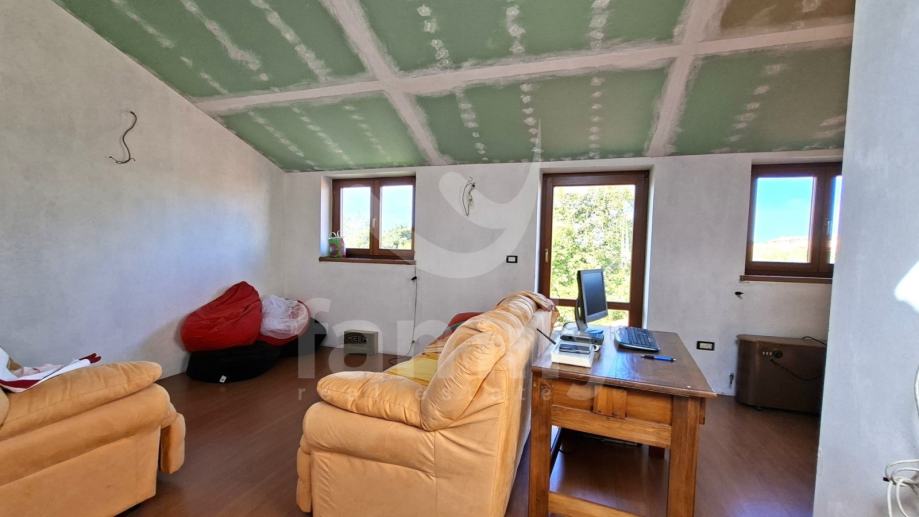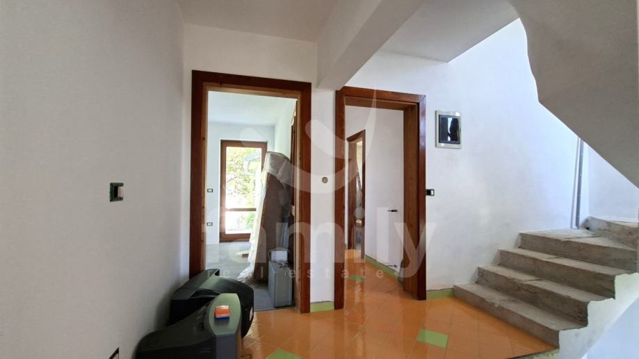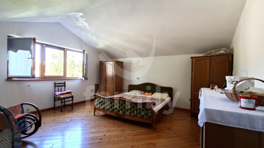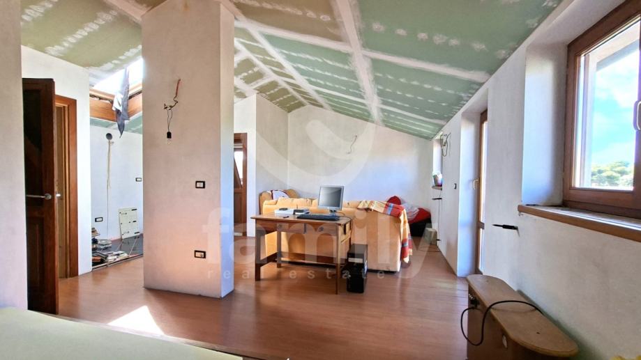U sklopu Općine Medulin, točnije u Pomeru svega par minuta šetnje do mora nalazi se ova prostrana kuća od 250 m2 koja se proteže na tri etaže i okućnicu od 440 m2. Ulazom u prizemlje nekretnine koje nas vodi kroz prostran hodnik iz kojeg se ulazi u kvalitetno opremljenu kuhinju sa svim potrebnim sadržajima kao i komotan dnevni boravak sa blagovaonom sa izlazom na natkrivenu terasu sa ozidanim roštiljem i dvorište u kojem su zasađene masline. Također u prizemlju imamo komotno kupatilo te ostavu. Podovi kuhinje i kupatila su opremljeni pločicama dok je sustav grijanja putem peći na drva kao i klima uređaja, sprovedeno je centralno grijanje koje trenutno nije u funkciji. Druga etaža kuće i mansarda su u roh bau fazi i ima dvije spavaće sobe sa izlazom na terasu, kuhinju, dnevni boravak i kupatilo. Posljednja etaža, mansarda, također sa prostorom za kuhinju, kupatilo kao i otvoreni prostor boravka te izlaz na terasu. Cijela kuća je opremljena drvenom stolarijom.