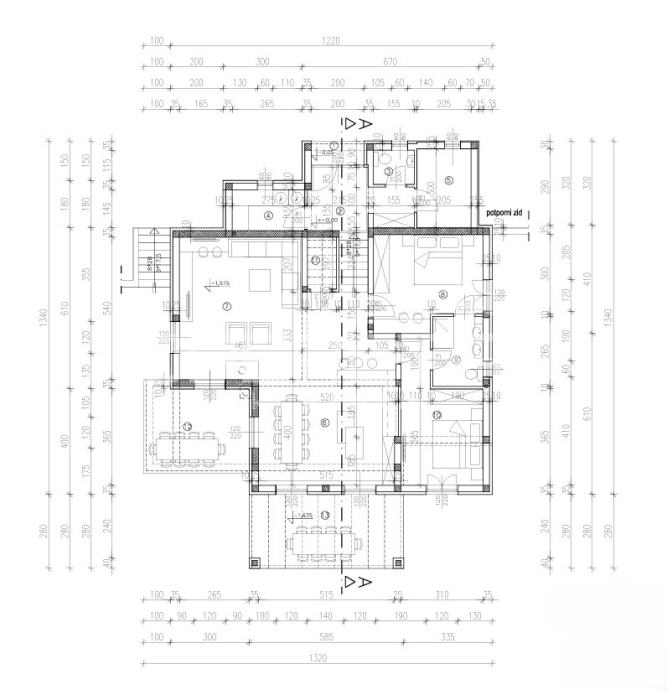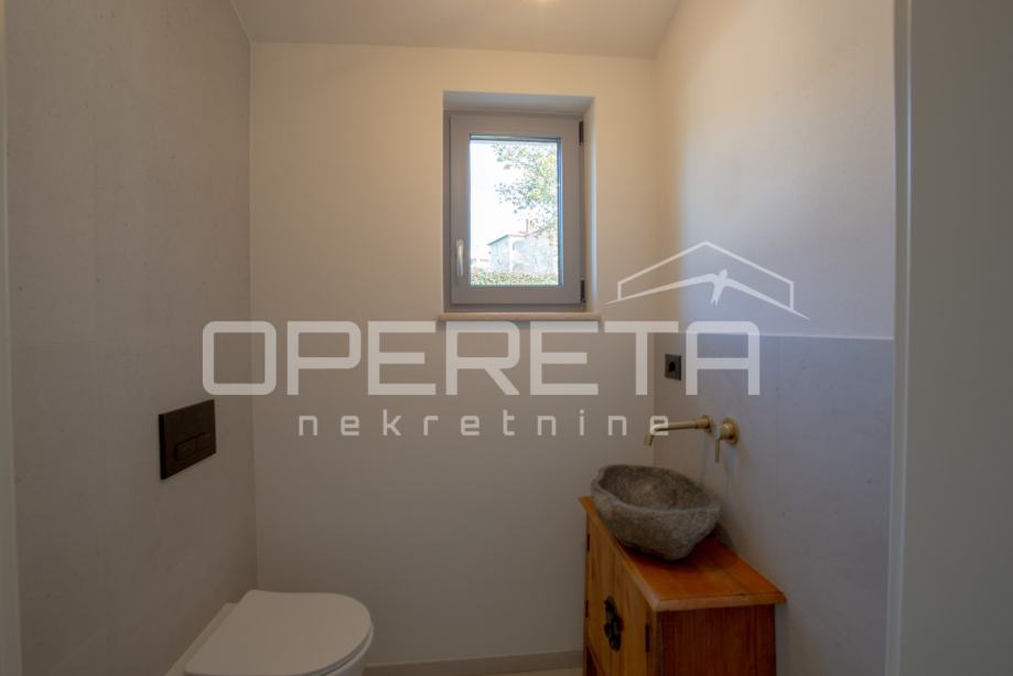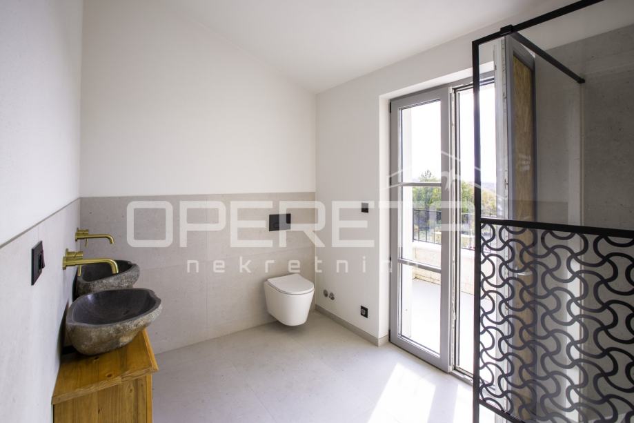 Ova nekretnina od 210 m² uključuje ukupno pet spavaćih soba, od kojih se dvije nalaze u prizemlju. Tu su i tri potpuno opremljene kupaonice te dodatni gostinjski toalet. Prostrana kuhinja povezuje se s blagovaonicom i dnevnim boravkom, koji imaju izlaz na terasu, a tu se nalazi i infinity bazen s otvorenim pogledom, kao i garaža za dva automobila.