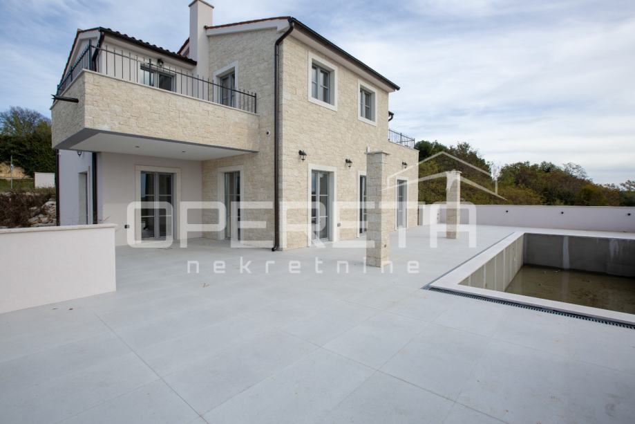 Novoizgrađena samostojeća kuća s otvorenim pogledom, prostranom garažom i prekrasnim infinity bazenom.