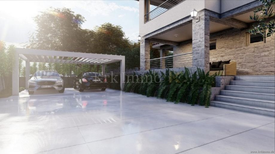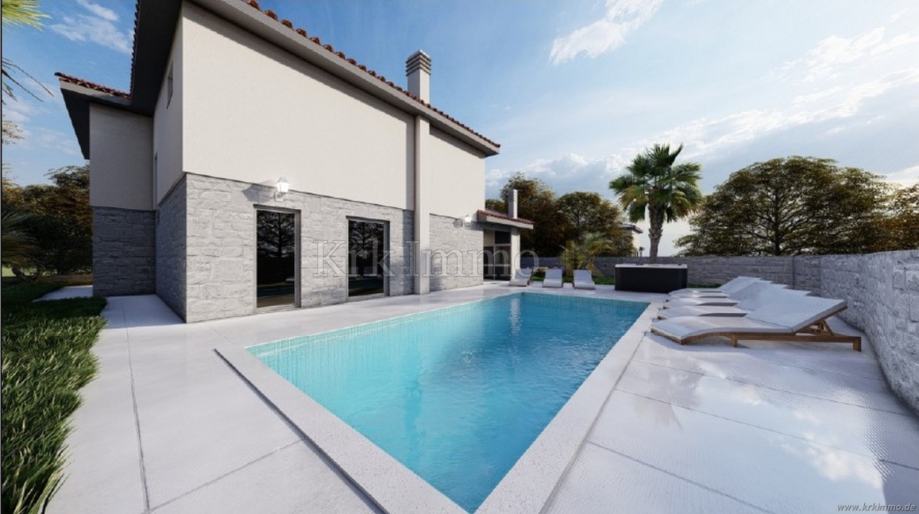 Na prodaju je predivna mediteranska samostojeća villa smještena na mirnoj lokaciji u okolici Dobrinja, na otoku Krku. Vila se prostire na dvije etaže s ukupnom stambenom površinom od 251 m2, a nalazi se na parceli površine 651 m2.