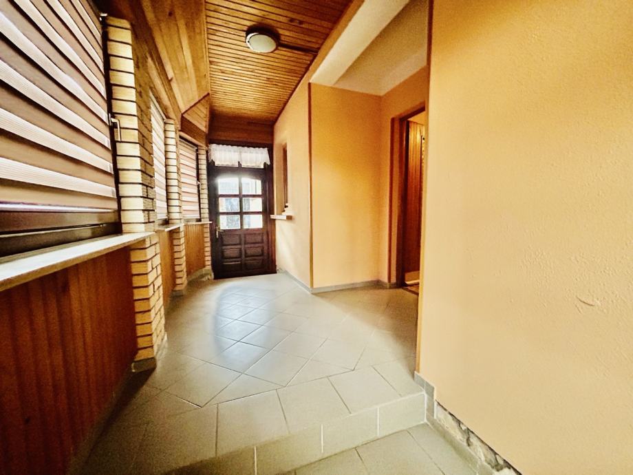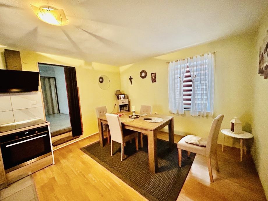 Stambeni dio nekretnine - prizemlje sastoji se od prethodnika i hodnika, dvije spavaće sobe, dnevnog boravka i kuhinje, špajze u suterenu i kupaonice. U drugom dijelu zasebnog stambenog dijela prizemlja (zasebni ulaz) smješteni su soba, kuhinja, blagovaonica i mali hodnik, te kupaonica i spremište. Prizemlje je od tavanskog dijela odijeljeno betonskom dekom - stropom. Na tavanskom dijelu nekretnine provedena je elektroinstalacija, a prostor je u rohbau izvedbi.