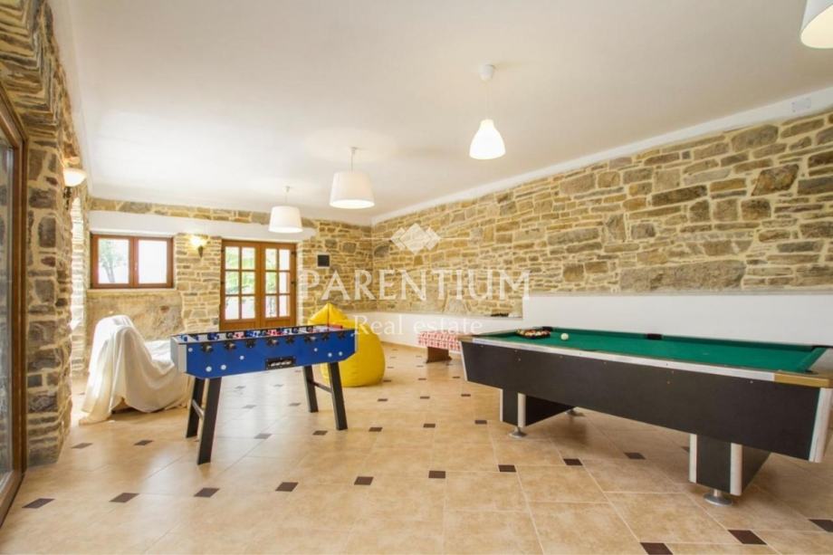 Vanjski bazen s tušem i ležaljkama na sunčanoj terasi, druga velika natkrivena terasa s roštiljem, unutarnji i vanjski zabavni sadržaji kao što su igralište za djecu, stolni tenis, biljar, stolni nogomet, Playstation itd.