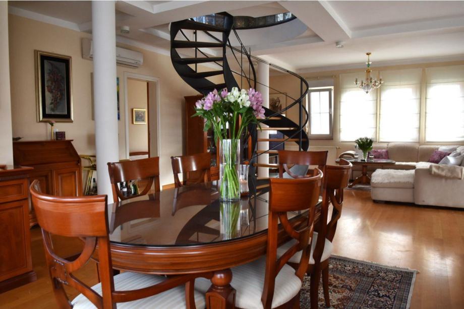 Prodaje se dvoetažni stan smješten na prvom katu i u potkrovlju samostojeće stambene vile, koja se sastoji od dva stana s odvojenim ulazima, što omogućuje privatnost. Stan ukupne korisne površine od 188,92 m² prostire se na dvije etaže.