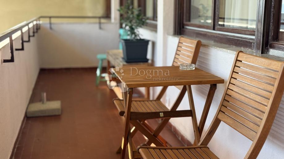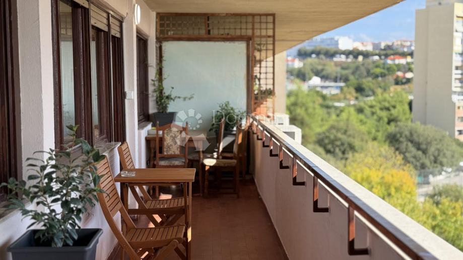 Veliki balkon povezuje kuhinju, dnevni boravak i jednu od soba, s otvorenim pogledom na park i more.
