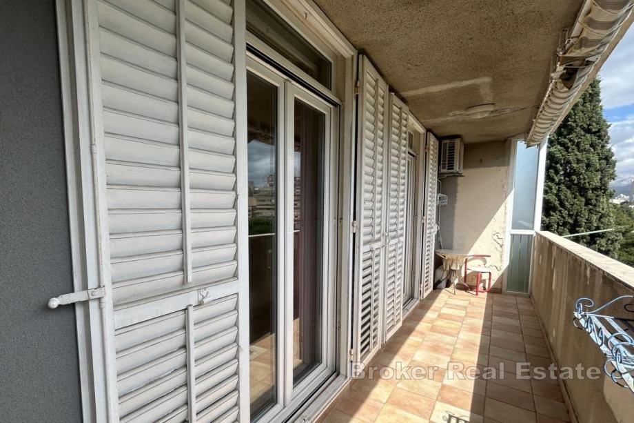 Prodaje se prostrani jednosobni stan površine 70 m², smješten na zadnjem, 5. katu stambene zgrade s liftom, u splitskom kvartu Blatine.
