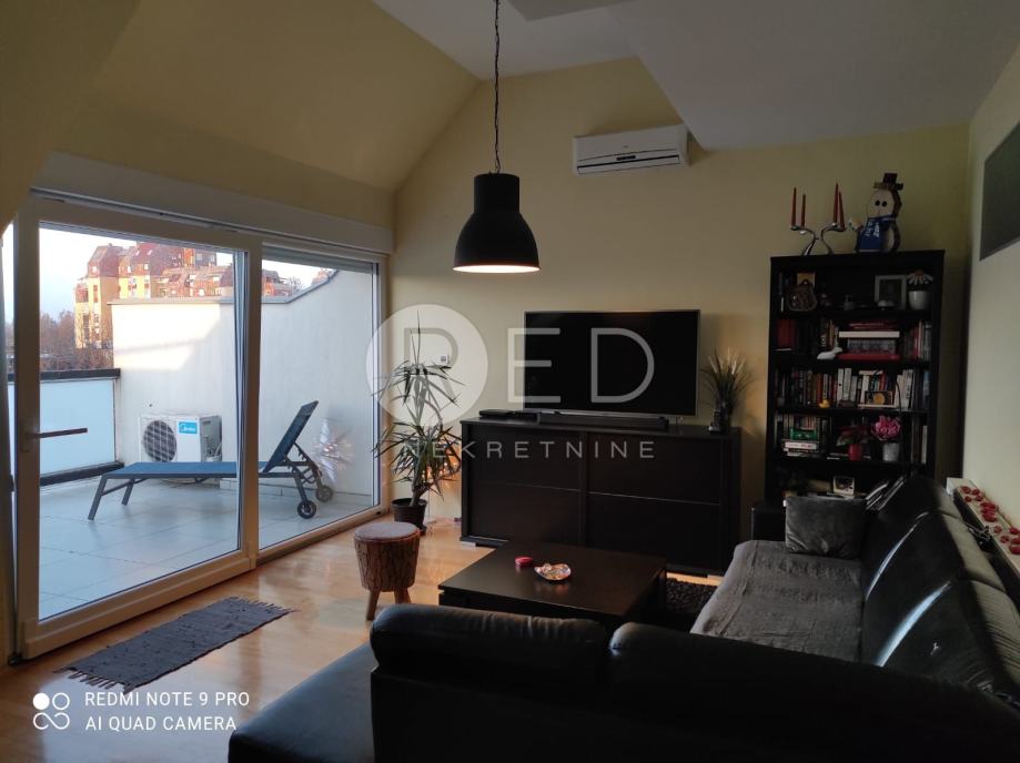 Stan ima prostranu terasu od 18 m2, balkon 12,30 m2 s kojih se pruža prekrasan pogled.