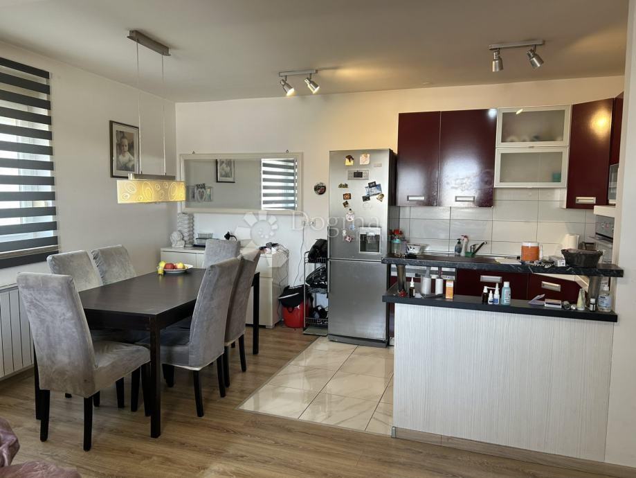 Stan koji nudimo nalazi se na drugom katu novije stambene zgrade iz 2009. godine (ima lift), ukupne površine 84 m². Sastoji se od prostranog dnevnog boravka, kuhinje s blagovaonicom, dvije spavaće sobe, hodnika, kupaonice s WC-om, dodatnog manjeg WC-a s umivaonikom te balkona.