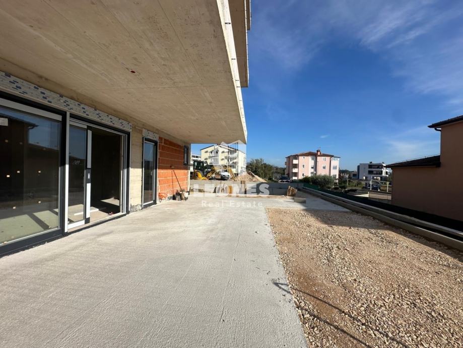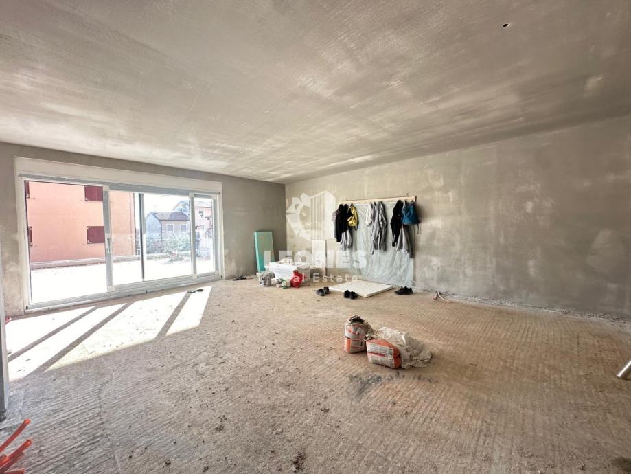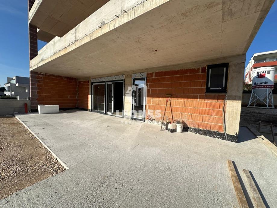 Stan se nalazi u prizemlju kvalitetne zgrade te se sastoji od ulaznog hodnika, dvije spavaće sobe od kojih jedna ima svoju kupaonicu, još jedne kupaonice te open space dnevnog boravka s kuhinjom i blagovaonicom.