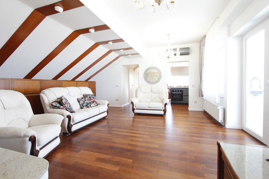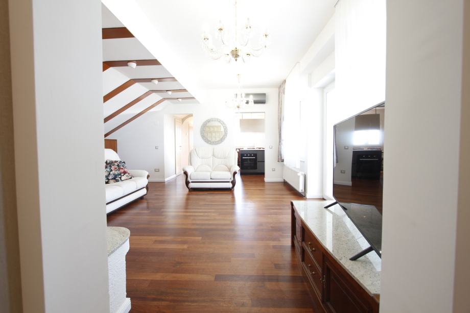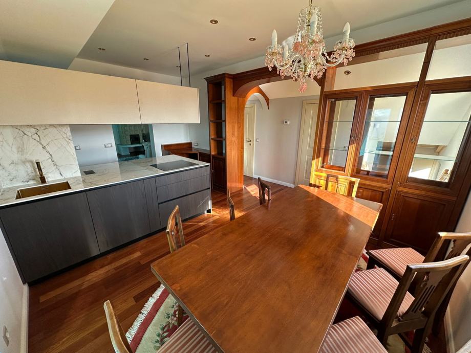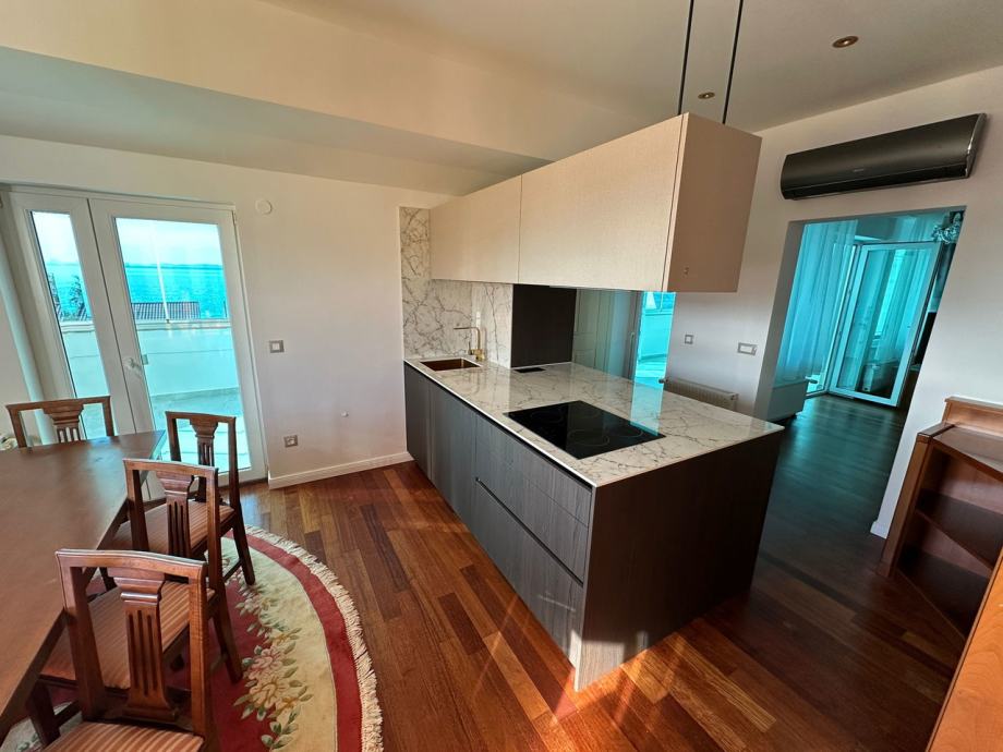 Stan je idealan za one koji traže vrhunsku lokaciju s izvanrednim pogledom, obiljem prirodnog svjetla i komfornim rasporedom prostorija. Zatvoreno pristupno stubište s prvog kata osigurava privatnost i ekskluzivan ulaz u stan.