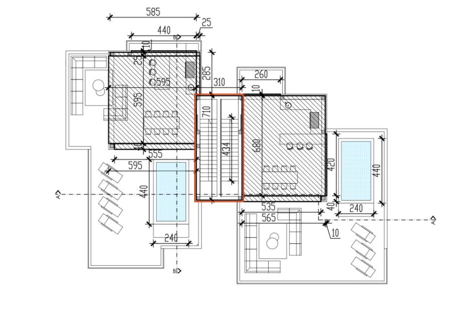 U zgradi s četiri stana prodaje se stan na prvom katu ukupne površine 143,49 m2 (površina bez koeficijenata iznosi 231,15 m2). Stambene površine 91,60 m2 sastoji se od hodnika, tri spavaće sobe (9,52 m2, 10,80 m2 i 12,53 m2), dvije kupaonice te open space prostora kuhinje, blagovaonice i dnevnog boravka površine 32,14 m2. Iz istog se pruža izlaz na nenatkriveni balkon površine 3,13 m2 te natkriveni dio površine 20,65 m2. Unutarnjim stepeništem se ide na gornju etažu gdje se nalazi terasa (natkriveni dio 38,78 m2 i nenatkriveni 68,99 m2) kao i bazen površine 8 m2.