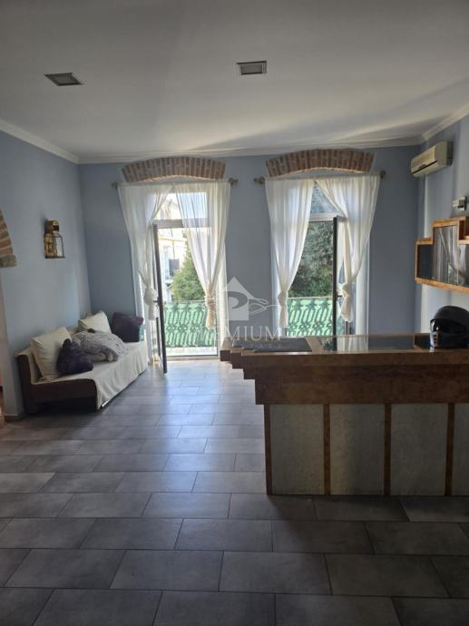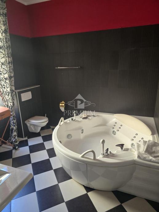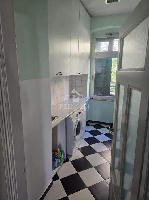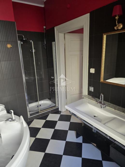 U ponudi imamo gospodski stan za dugoročni najam koji se nalazi na 1. katu zgrade u strogom centru grada Opatije. Sastoji se dva hodnika, dnevnog boravka, blagovaone, kuhinje koja je opremljena svim potrebnim aparatima, spavaće sobe, dvije kupaone, ostave i velikog balkona. Stambena neto površina iznosi 90 m2, dok ukupne površine ima 121,90 m2. Grijanje je podno na struju, a ima i dvije klima jedinice (grijanje/hlađenje). Stan je udaljen svega par minuta hoda od mora, plaža, šetnice Lungomare, tržnice i svih potrebnih sadržaja za svakodnevni život. Režije NISU uključene u cijenu najma.