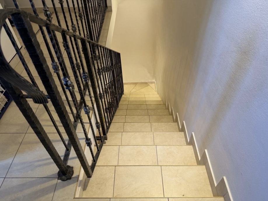 Stan se sastoji od hodnika,kuhinje i balgovaonice,prostranog dnevnog boravka,dvije savaće sobe,kupaonice,zasebnog Wc-a,odvojenog vešeraja,terase koja je idealna za boravak na otvorenom,loggie i spremišta u podrumu.