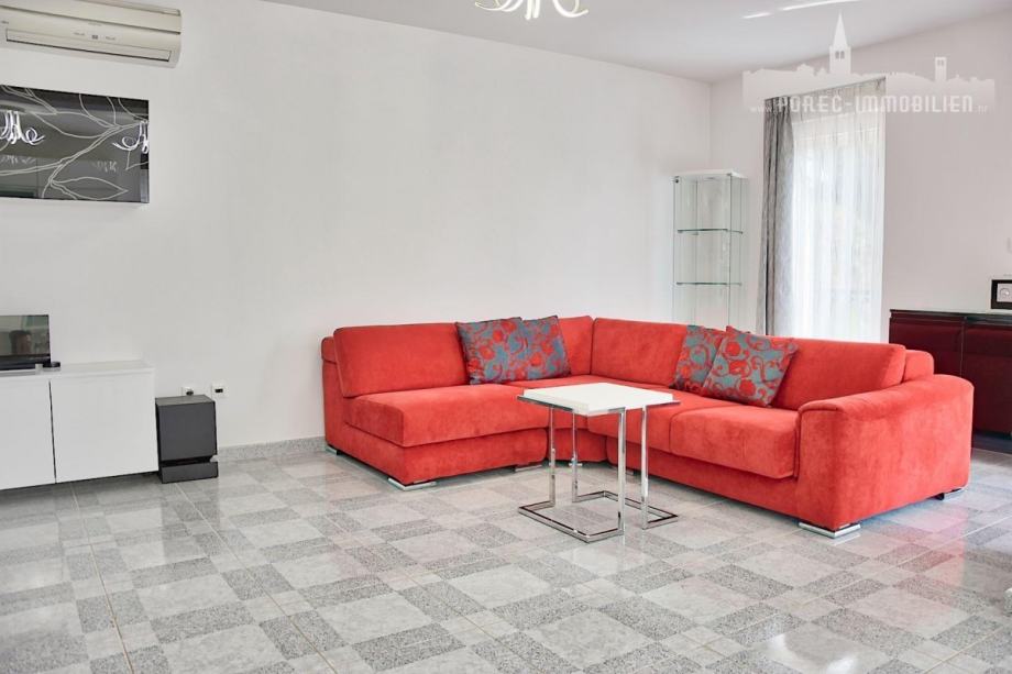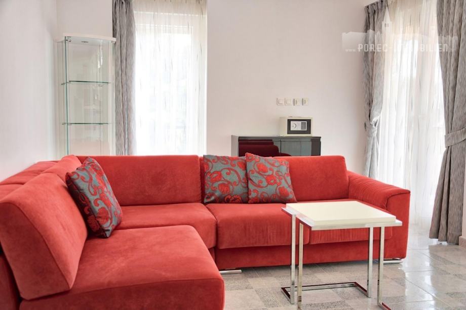 Ovaj prostrani stan površine 119 m² nalazi se na prvome katu zgrade, udaljen samo 300 metara od mora i centra grada Poreča.