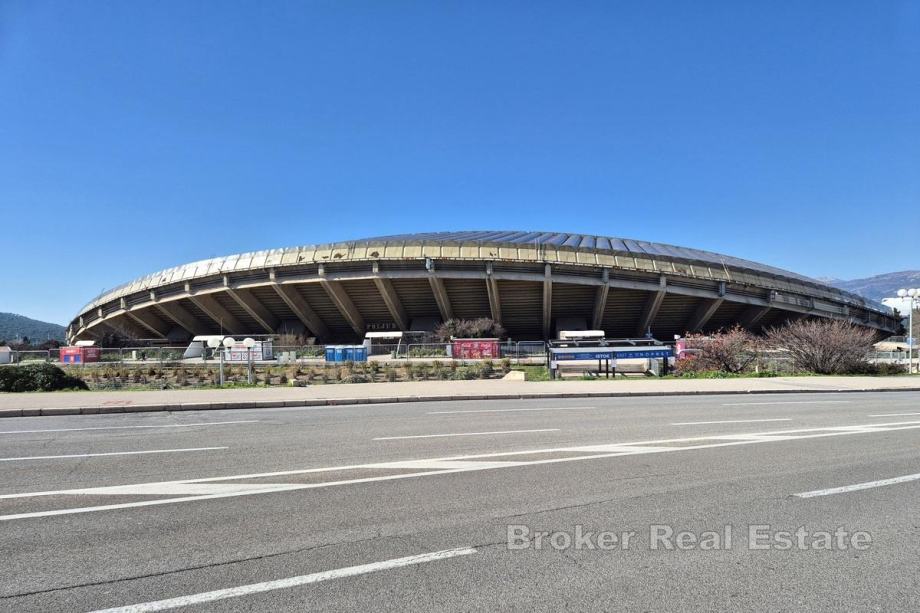 Prostrani višenamjenski prostorni prostor, za zakup, smješten u suterenu poslovne zgrade u blizini stadiona Poljud, ukupne površine od 442 m2.