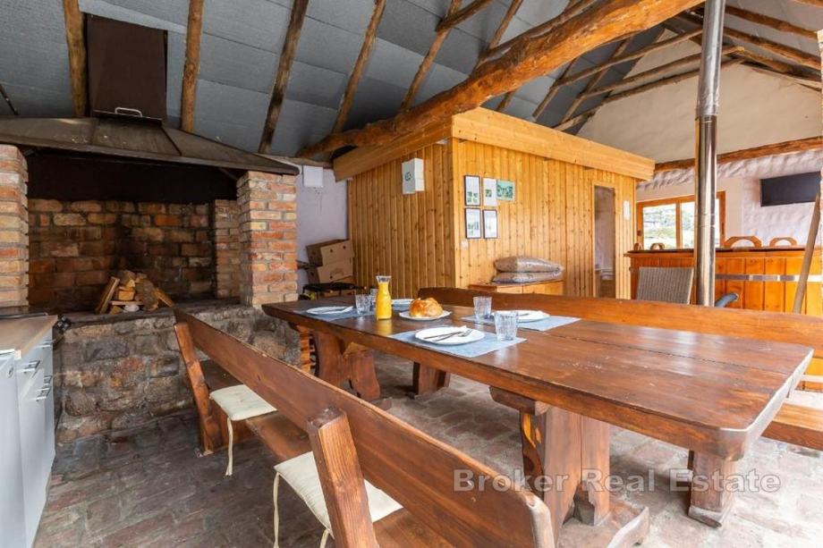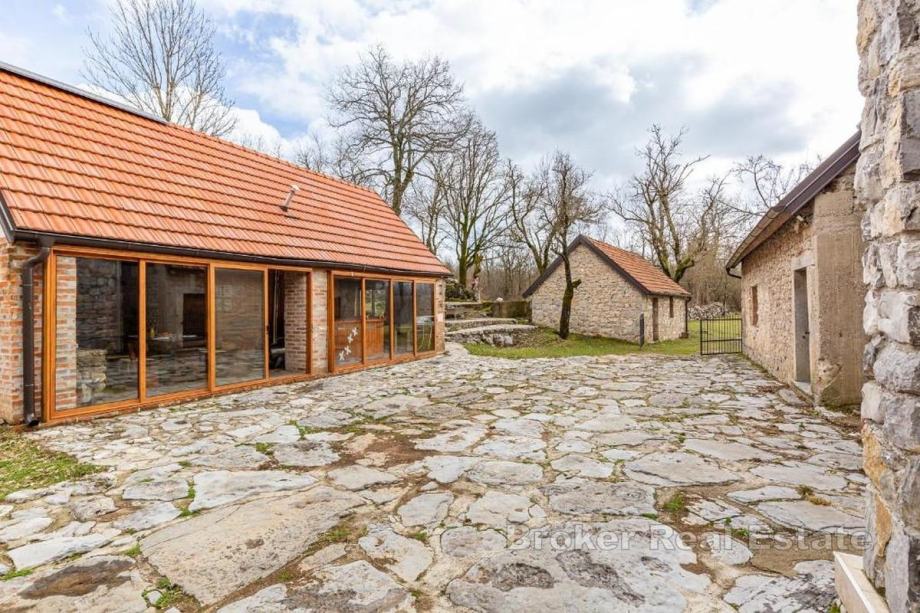 Na prodaju je jedinstveno imanje koje se prostire na čak 50.000 m² okućnice, okruženo zelenilom i potpunim mirom, a čine ga četiri kamene kuće i rustikalna grill konoba, sve renovirano 2022. godine. Cijeli posjed osmišljen je tako da nudi vrhunsku udobnost i privatnost, idealnu za obiteljski život ili kao ekskluzivnu turističku investiciju.