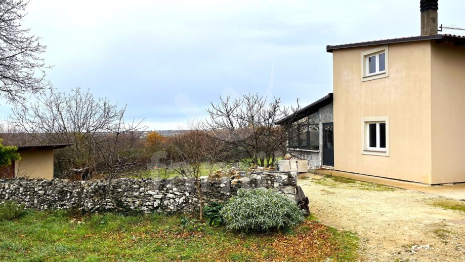 U manjem naselju koje se nalazi na brežuljku unutar općine Marčana na mirnoj lokaciji na kojoj smo odvojeni od prometnih cesta nalazi se ovo predivno imanje koje se prostire na više od 3 770 m2. Udaljenost od mora je svega 5 km. Kuća je ukupne površine 150 m2 i proteže se na prizemlje i kat. U prizemlju imamo dnevni boravak sa kuhinjom i blagavaonicom, kupatilo i zatvorenu terasu. Na katu se nalaze dvije spavaće sobe i kupatilo. Kuća je opremljena bijelom PVC stolarijom dok je natkrivena terasa zatvorena ALU stolarijom. Za grijanje se koristi peć na drva, a za hlađenje klima uređaj. Kuća se prodaje u namještena. Zemljište je građevinsko gospodarske namjene.
