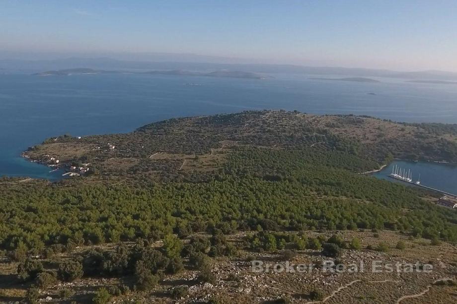Zemljište obuhvaća južnu i sjevernu stranu otoka. Južna strana ima očaravajuć pogled na Kornatsko otočje te obuhvaća malu mirnu uvalu, zaštićenu od bure i juga.