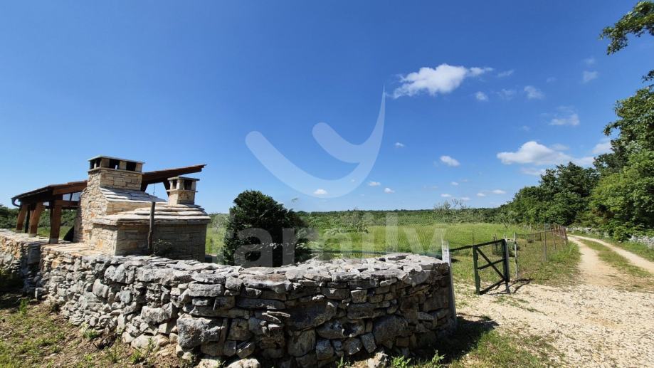 Prodaje se atraktivno zemljište na mirnoj lokaciji na blago nakošenom terenu sveukupne površine 13 979 m2 s malinama koje su stare 20-tak godina i ima ih 200 komada, uredno održavane i rezane s ljubavlju. Na zemljištu posjedujemo još i zasađene voćke, 10 smokva, 6 žižula, oleandri, višnja, čemprese, lavande i još neke dekorativne mediteranske biljke koje uspiješno rastu jer na zemljištu posjedujemo pitku vodu. Parcela posjeduje ulaz sa dvije strane, pristupni put direkt s asfaltirane ceste i jedan javni pristupni put s gornje strane parcele. Cijela parcela je ograđena suhozidom dužine 300 m, visine 140 cm i dubine 40 cm. Zid daje dodatnu privatnost i rustikalni šarm cijelom zemljištu. Na zemljištu se nalazi i kutak za odmor i spremanje hrane, tako da je vlasnik uz puno ljubavi, vremena i pažnje sam napravio kamin, krušnu peć i nadrstrešnicu s velikim drvenim stolom što je izuzetno dobro za druženje i potrebno u ljetnim mjesecima jer nam pruža hlad i mjesto za odmor. Posebnu čar zemljištu daje i mali kažun koji se nalazi na samoj čestici negdje u sredini zemljišta. Voda se također nalazi na samom zemljištu.
