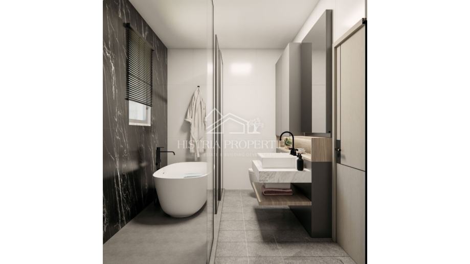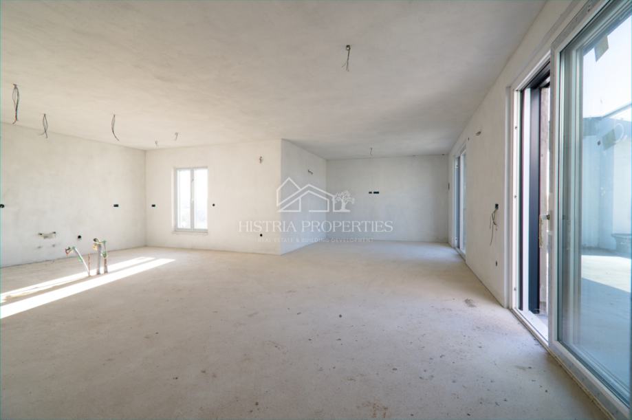 Stan je fantastično osmišljen u modernoj zgradi sa prostranim prostorijama koji u svemu odiše savršenim izborom za kupnju takvog luksuznog stana. Dnevni boravak otvorenog tipa na koji se nadovezuje kuhinja sa otokom i velika blagovaona okruženi prirodnom svjetlosti i terasama sa više strana oduševiti će svakoga. Mogućnost uživanja u jacuzziju sa pogledom na more i grad Poreč jedinstvena su prilika. Iz glavnog koridora idemo prema 3 udobne i komforne spavaće sobe svaka sa izlazom na terasu i vlastitom kupaonicom dovoljno velikom da se uz tuš postavi kada za dodatno opuštanje i relaksaciju. Bogati sadržaj ovoga stana nudi još dodatni toalet, zasebnu praonicu i spremište povezano direktno sa kuhinjom.