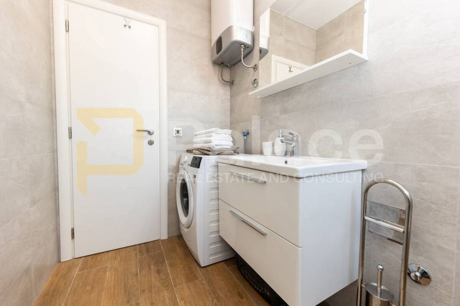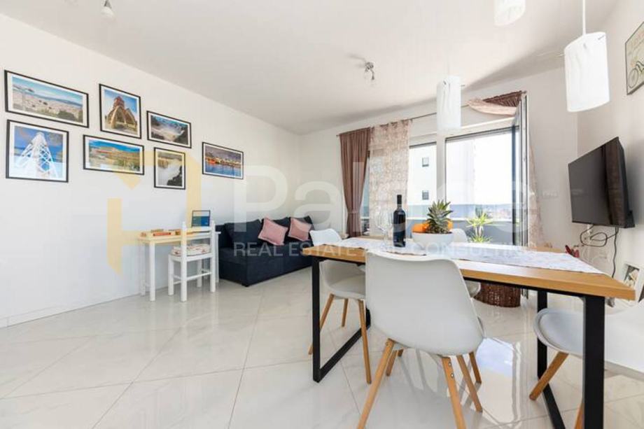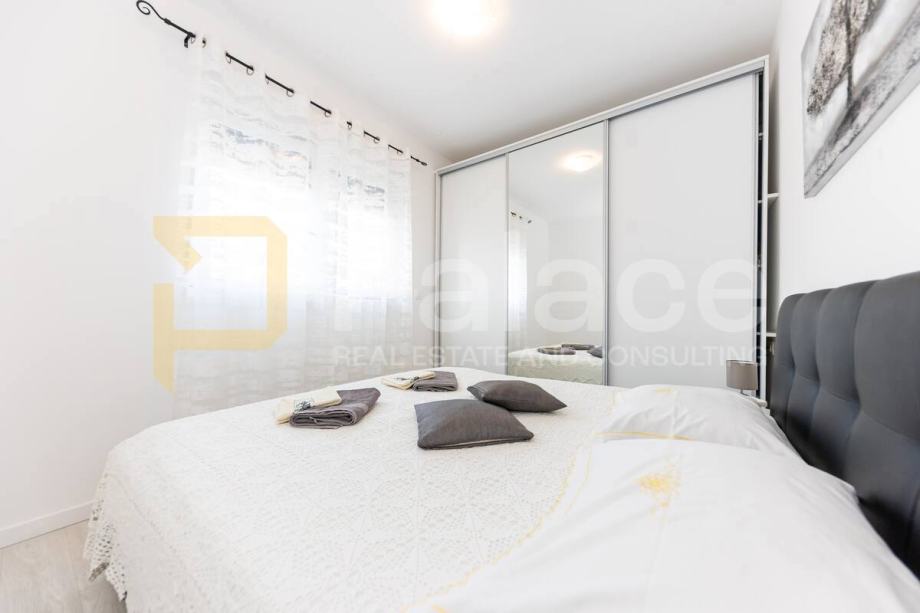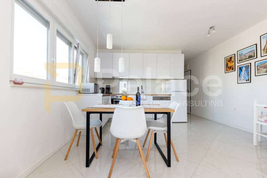 Ukupna stambena površina stana iznosi 60 m² i sastoji se od dvije spavaće sobe, kupaonice, kuhinje s blagovaonicom i dnevnim boravkom te prostrane lođe s pogledom na more. Stanu pripada jedno vanjsko parking mjesto te mogućnost korištenja zajedničkog bazena.