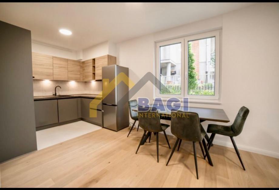 Ima direktni izlaz na vrt površine 97 m2. Sastoji se od kuhinje, dnevnog boravka, dvije spavaće sobe, kupaonice i dodatnog toaleta. Stanu pripada i šupa od 4m2 te dva parkirna mjesta u lift garaži. Stan je opremljen osnovnim namještajem i svim potrebnim aparatima. Stan je nekoristen i prvo useljenje.