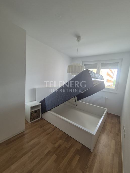 Iznajmljuje se moderan, potpuno namješten stan u novogradnji (1. najam) u Lovinčićevoj ulici (Peščenica - Žitnjak, Donje Svetice), dostupan isključivo za dugoročni najam (minimalno godinu dana uz potpis ugovora).