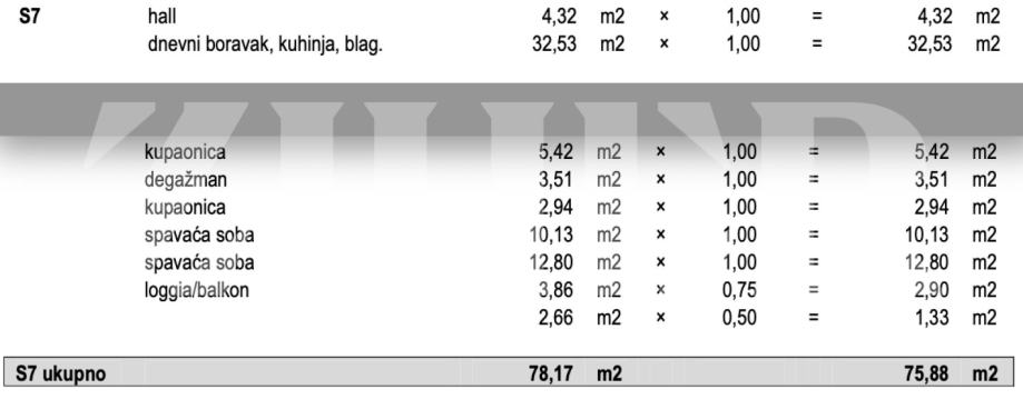 S7 - Dnevni boravak, kuhinja i blagavaonica, dvije kupaonice, dvije spavaće sobe ukupne površine 72 m2 + balkon 7 m2 + 2 garažno PM = 1.360 eura/mjesečno + PDV = 1.700 eura