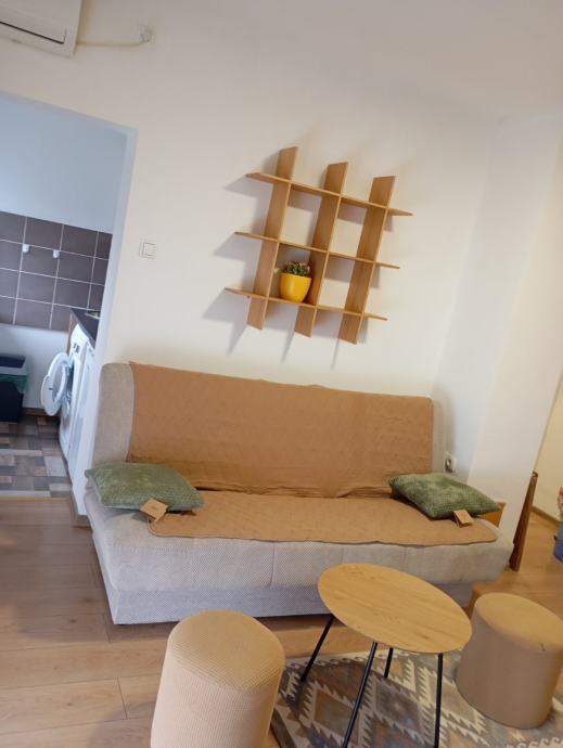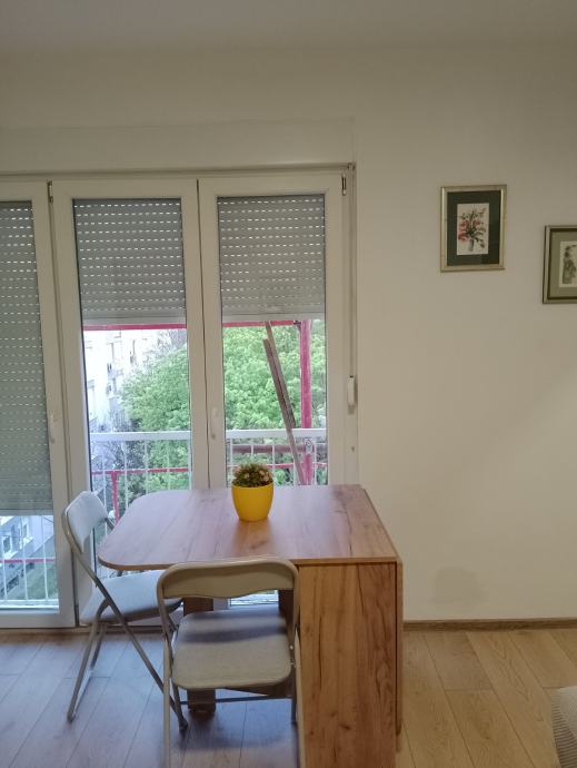 Nedavno kompletno renoviran stan. Stan je potpuno opremljen: novi kauč, novi ormari, nova kupaonica, nova kuhinja, novi stol i stolice, novi štednjak, nova električna peć, nova ulazna vrata, perilica rublja, klima uređaj, smart tv, WiFi brzi flat internet (1GB). Apsolutna privatnost (stan je na zadnjem katu), puno dnevnog svjetla (orijentacija na jug). Niske režije, u prošle godine završena energetska vanjska i unutarnja obnova zgrade (stubište, podrumi). Besplatan parking ispred zgrade, blizina busa (3 minute hoda), tramvajske stanice su udaljene desetak minuta hoda. Garantni depozit (polog) obvezan u visini jedne mjesečne najamnine. Ugovor na godinu dana, moguća prijava boravišta. Iznajmljujemo jednoj osobi, nepušaču. Kućni ljubimci nisu dozvoljeni. Informacije putem telefonskog poziva, na SMS i mailove ne odgovaramo. Stan će biti dostupan za razgledavanje uz prethodni telefonski dogovor.