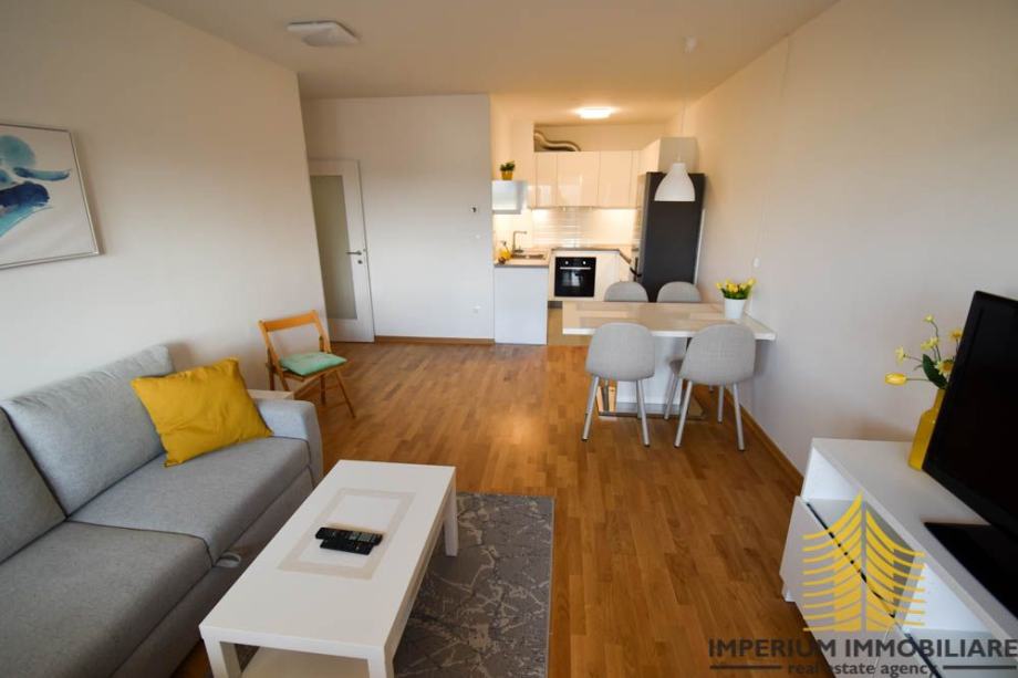 Ovaj moderno uređen stan veličine 65 m2, smješten u novogradnji, nudi vrhunsku udobnost i idealan raspored: