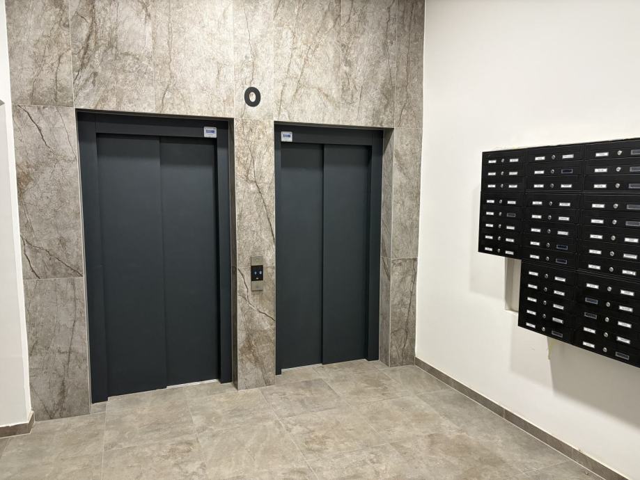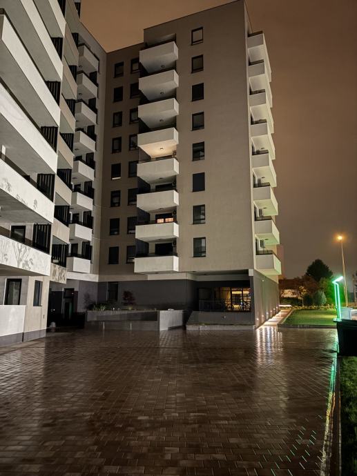 Iznajmljuje se potpuno opremljen, moderan stan površine 56 m² u novogradnji (2025.), smješten na predzadnjem 7. katu zgrade od 8 katova s liftom.