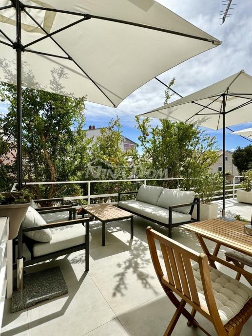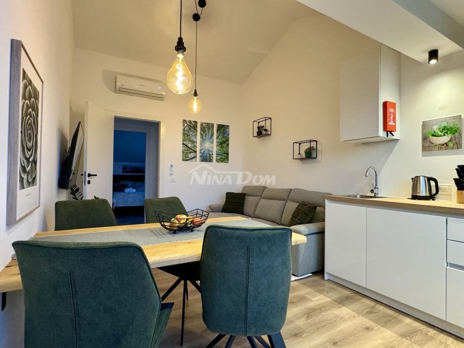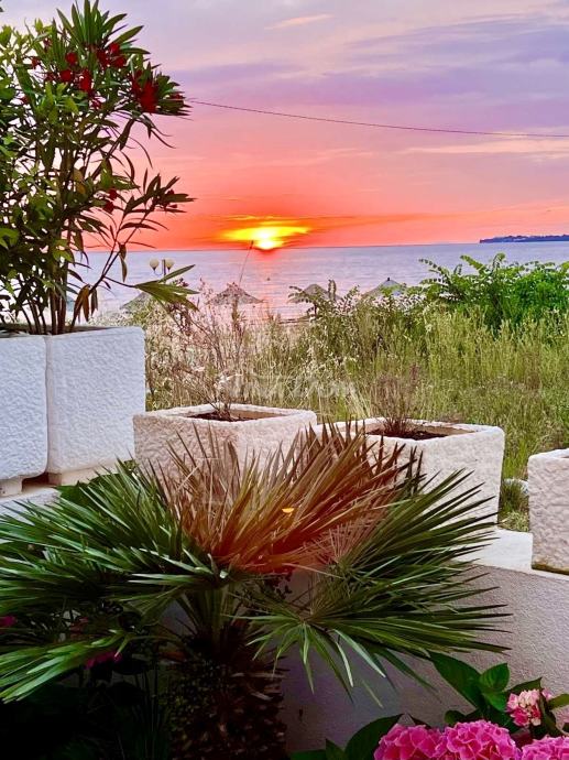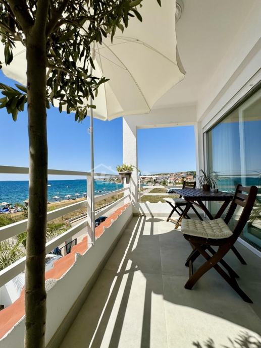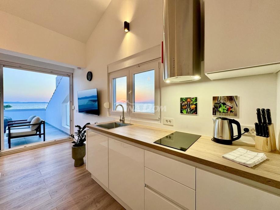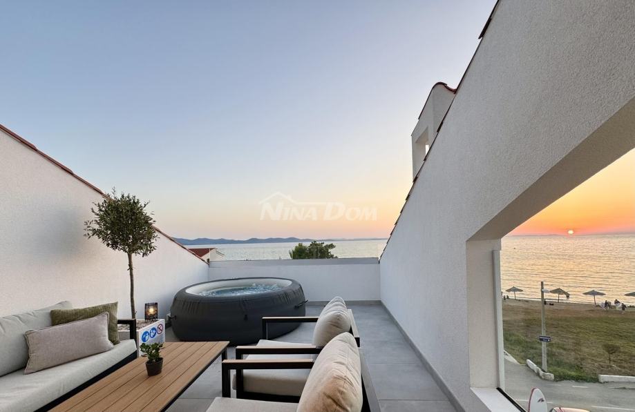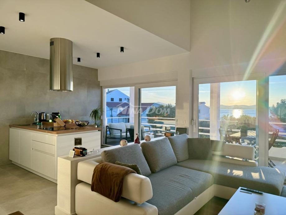 Diklo prvi red na prometnici,udaljeno svega četrdesert metara od mora,vrhunski poslovno stambeni objekat.Sastoji se od 9 potpuno opremljenih,renoviranih apartmana te jednog velikog master apartmana,te dviju poslovnih jedinica.U prizemlju se nalaze dva poslovna prostora,od kojih je trenutno caffe bar(mini kuhinja za doručak) u funkciji,fittness studio,te self servis praona rublja.Na ostalim etažama se nalaze ostale apartmanske jedinice iz kojih se pruža prekrasan pogled na zadarski kanal i otoke.Na dodatnoj čestici,neposredno uz nekretninu,nalaze se komfornih 11 parking mjesta.Kuća se prodaje komplet uhodana u turizam,sa svom opremom i namještajem.Blizina svih sadržaja,pekara,trgovina hranom,bankomat,prekrasna plaža i ostalo...Idealno kao investicija,za bavljenje turizmom i povratom investicije.Za sva pitanja i obilazak,stojimo na raspolaganju!