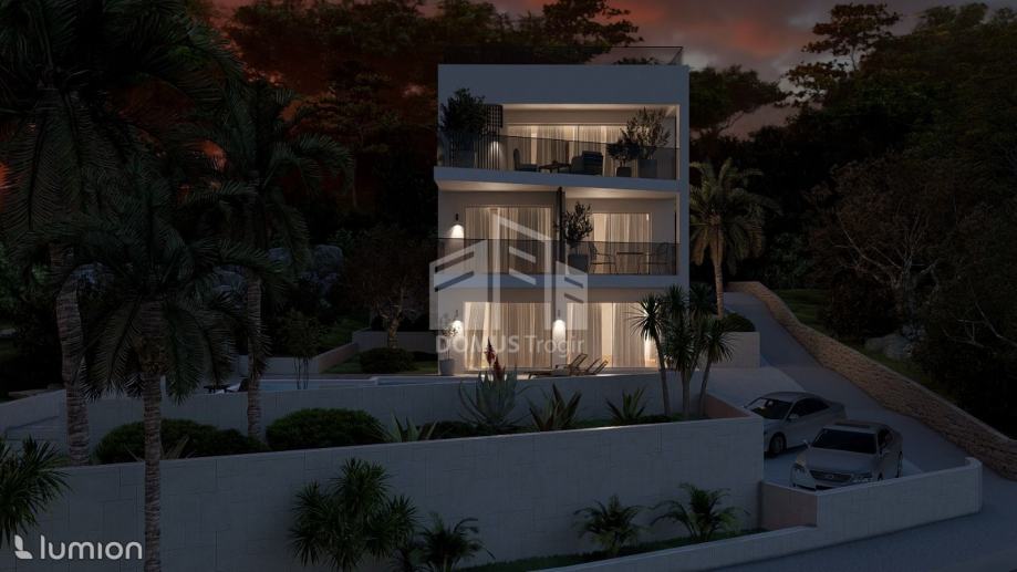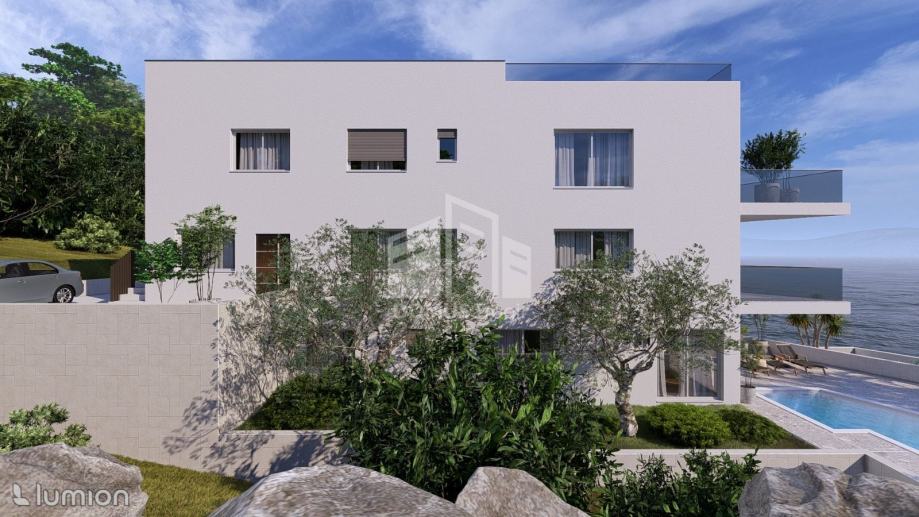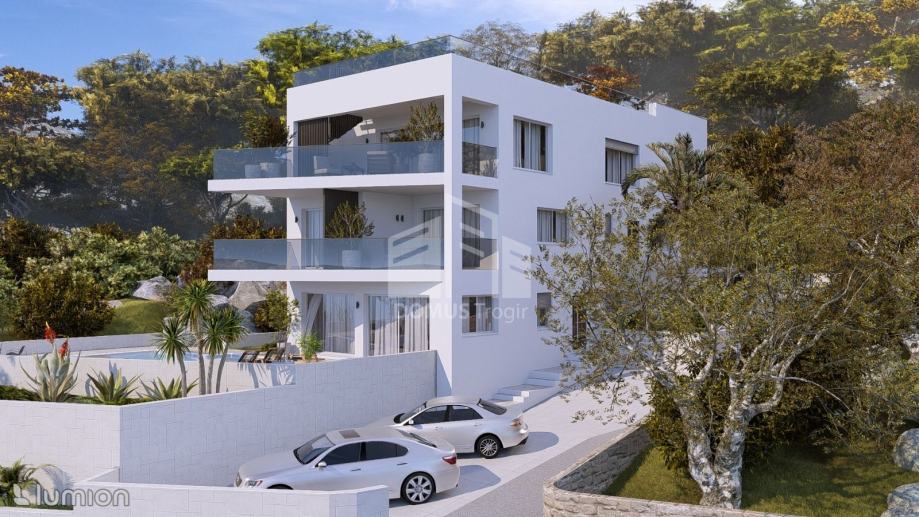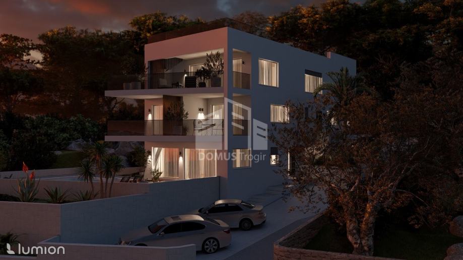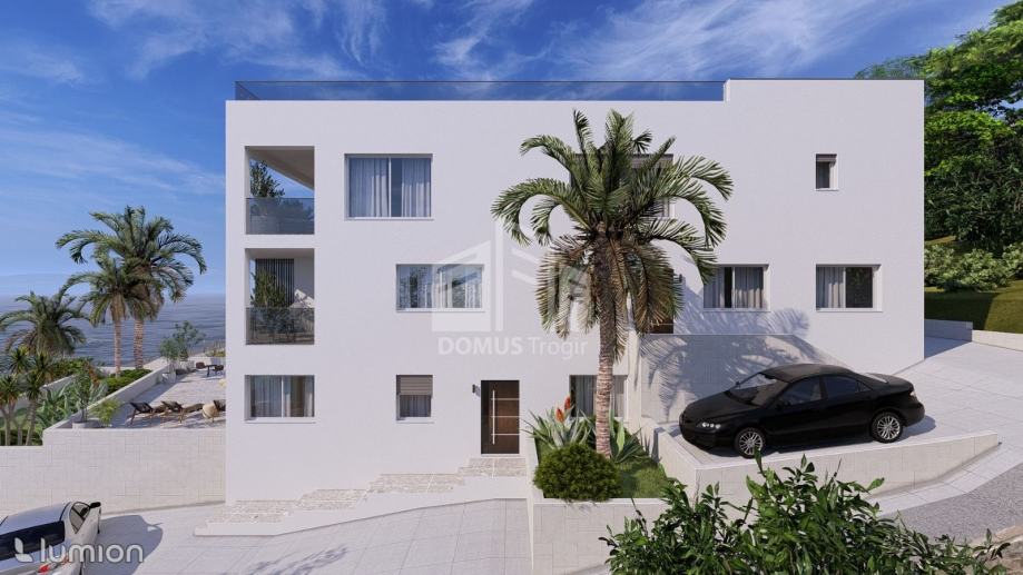 Na prodaju stavljamo dvosobni stan na prvom katu stambene zgrade u izgradnji u Okrugu Gornjem u prvom redu od mora.