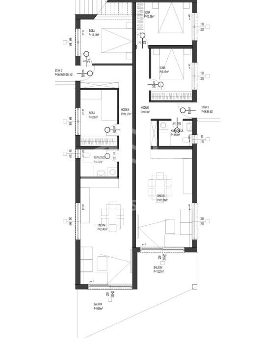 Unutarnja površina stana iznosi 59,09 m2, a balkona 9,80 m2.