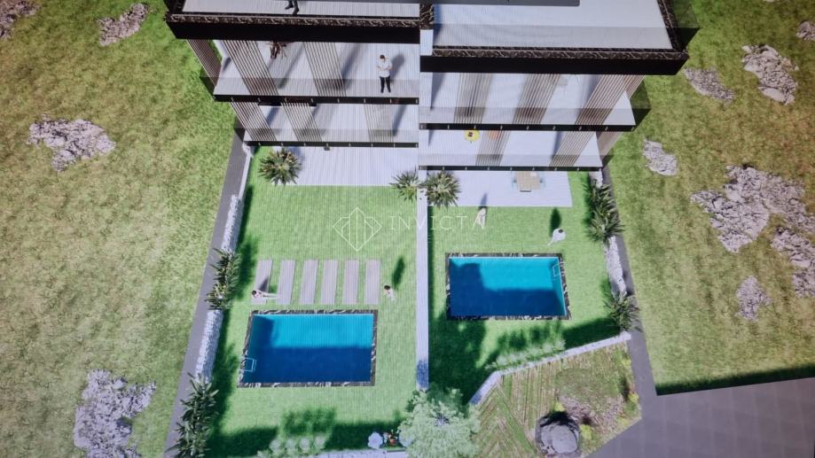 Zgrada će biti izvedena korištenjem najkvalitetnijih materijala i najmodernijih tehničkih rješenja, uključujući dizajnersku keramiku, podno grijanje, klimatizacijske sustave najnovije generacije, staklene stijene s visokim energetskim svojstvima te lift koji povezuje sve etaže. Svaka jedinica projektirana je s naglaskom na luksuz, funkcionalnost i estetiku, s prostranim terasama, privatnim bazenima, zelenim površinama i visokim standardom završne obrade.