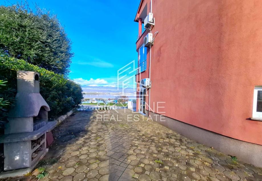 Nekretnina se nalazi odmah uz plažu te pruža ugodan prostor za boravak, odmor ili turistički najam. Apartman se sastoji od prostrane kuhinje s dnevnim boravkom, hodnika, tri spavaće sobe, kupaonice s WC-om te loggie površine 6,50 m² koja pruža idealan prostor za opuštanje uz morski zrak. Raspored prostora je funkcionalan i omogućuje ugodan boravak većem broju osoba.