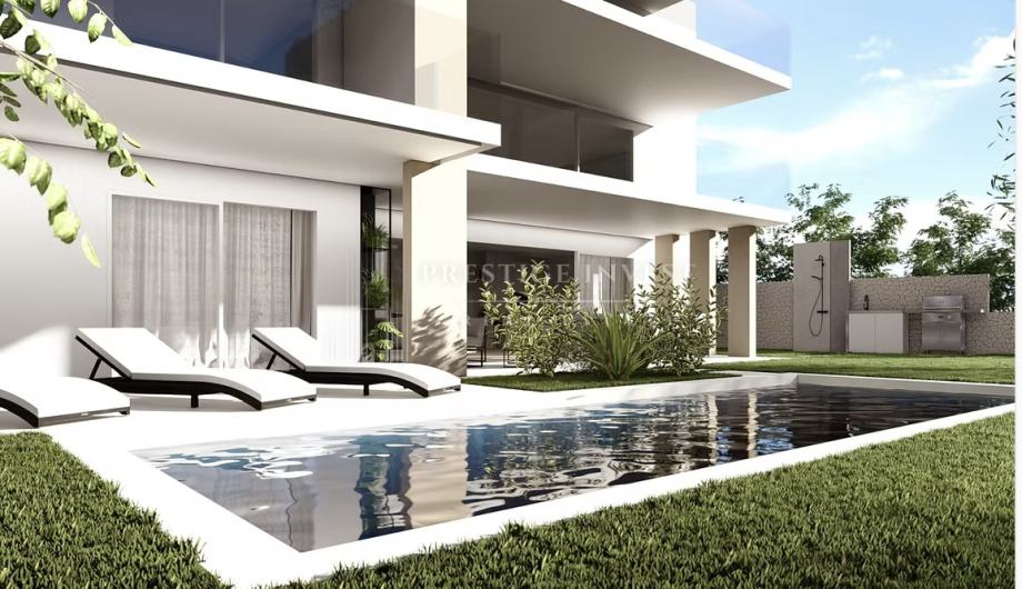 Stan u prizemlju uključuje veliki vrt, infinity bazen,