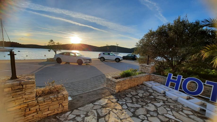 Parking je ispred hotela i javni je,a ispred su vezovi za manje brodove tako da gosti mogu doći i morskim putem.