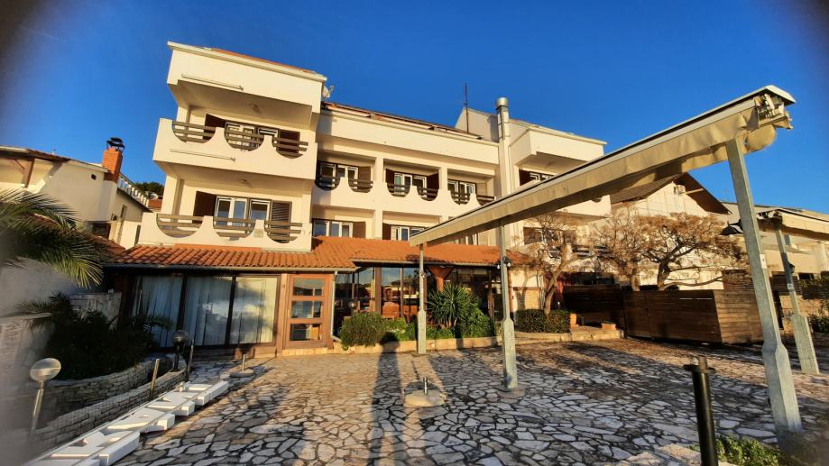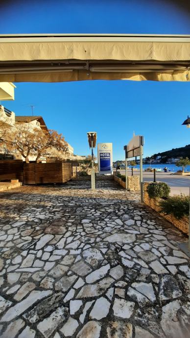 Prodaje se hotel smješten na kopnenoj strani mjesta Tisno uz samo more.Sastoji se od prizemlja u kojem je recepcija,restoran sa 80 sjedećih mjesta,sanitarni čvor,skladišta i ostave,a ispred hotela je prostrana terasa sa 40 sjedećih mjesta.Iz prizemlja se ide na više katove od ukupno tri s liftom.Na svakom katu je po pet soba ,što je ukupno 15 soba.