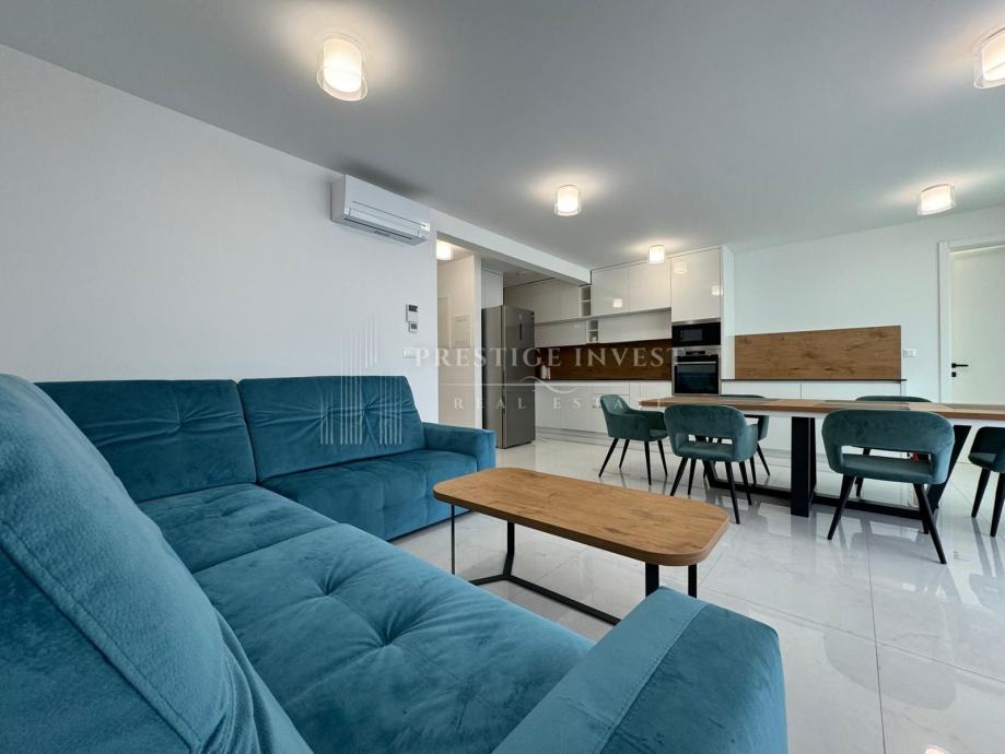 Stan je opremljen modernim namještajem po mjeri i opremom koji su uključeni u cijenu stana