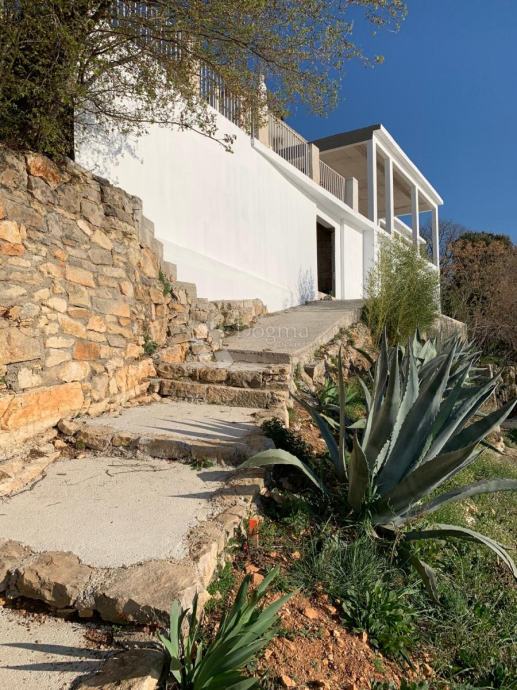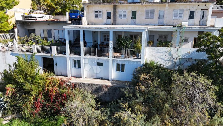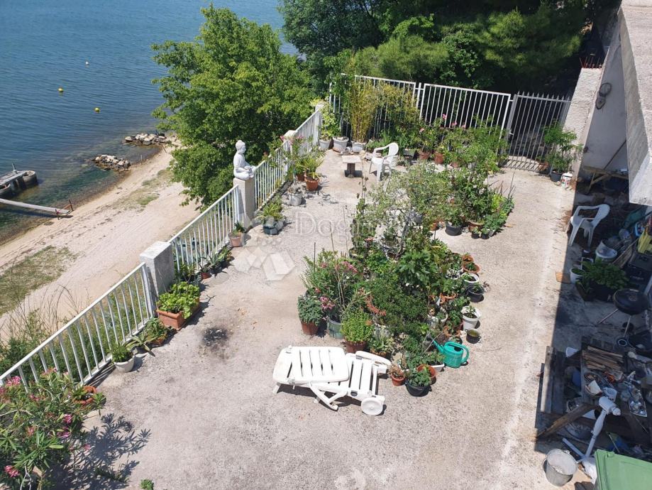 Ova dvokatnica na samom moru, smještena na prostranom zemljištu od 1019 m², predstavlja sjajnu priliku. Prostrana terasa i lođa omogućuju uživanje u vanjskom prostoru, dok uređen vrt dodatno povećava atraktivnost nekretnine. Unutarnji prostor od 300 m² može se iskoristiti za razne namjene.