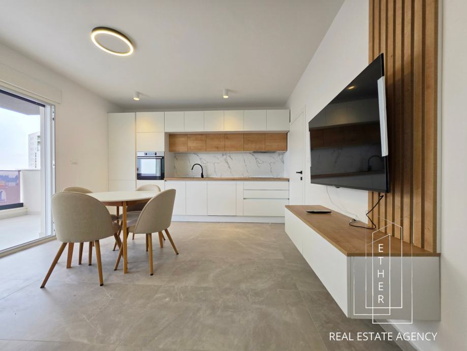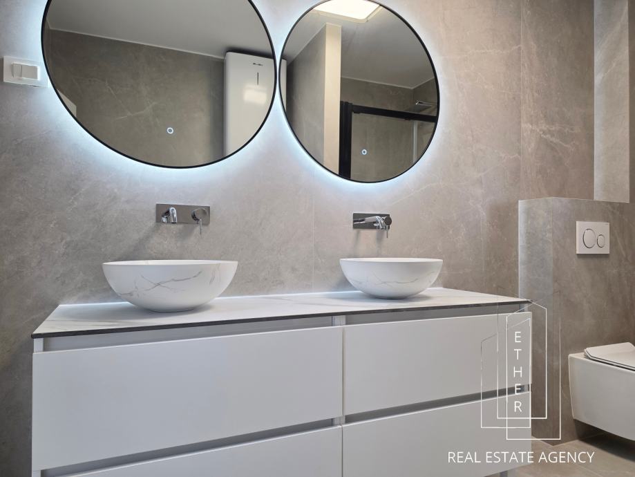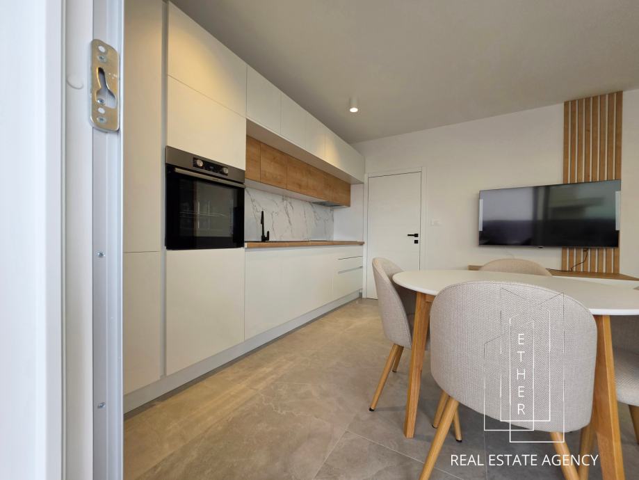 The apartment is modernly equipped and decorated with contemporary furniture and quality materials. The bathroom has underfloor heating, which provides an additional level of comfort. The apartment is air-conditioned with two air conditioners - one is located in the bedroom, and the other in the kitchen with dining area and living area, which allows for an optimal temperature throughout the year.