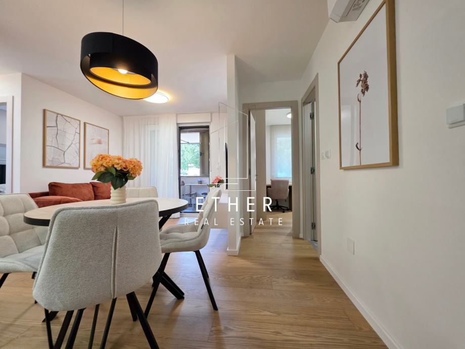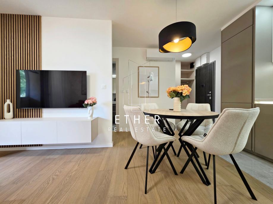 Klimatiziran, uvedeno podno grijanje u kupaonici, opremljen namještajem i uređajima (tri TV-a, klima, perilica posuđa, perilica/sušilica rublja).