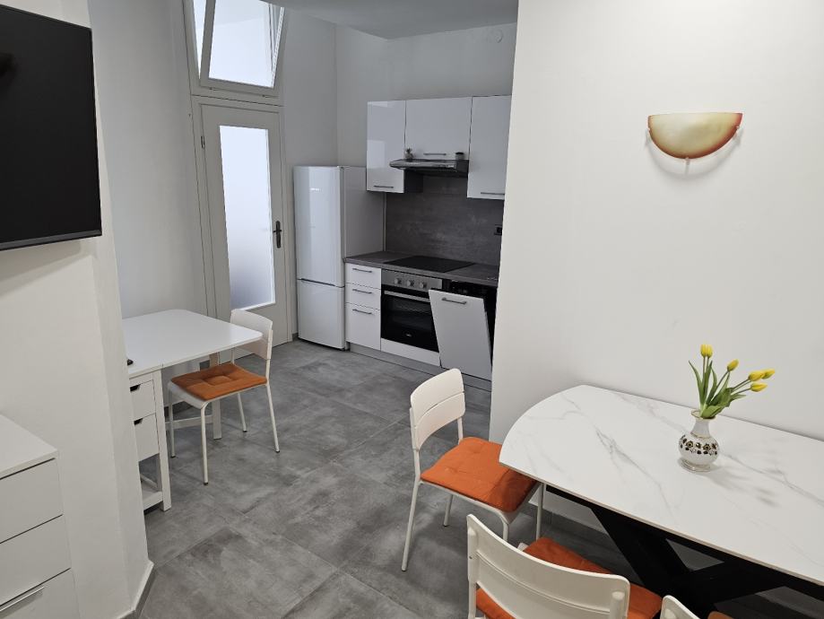 Stan na dugorocno za 2 do 3 osobe. Lokacija je u centru grada, blizu zlatnih vrata. Spavaća, dnevni/kuhinja, kupatilo, perilica rublja, klima ,perilica sudja, kauc na razvlacenje. Zivotinje nisu dozvoljene.