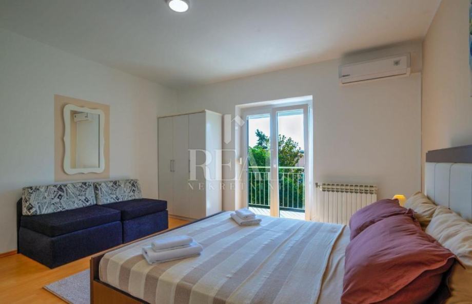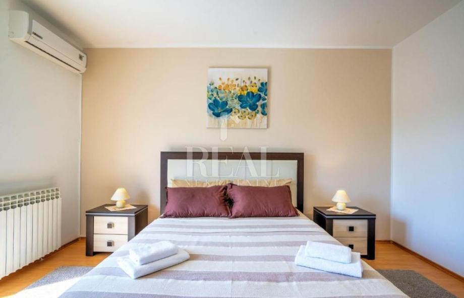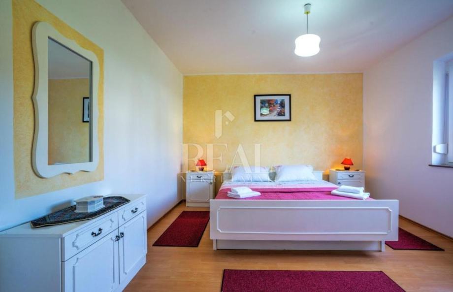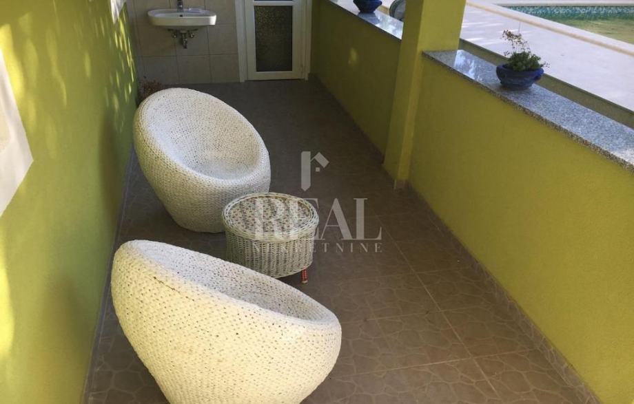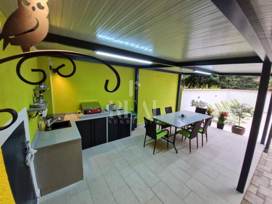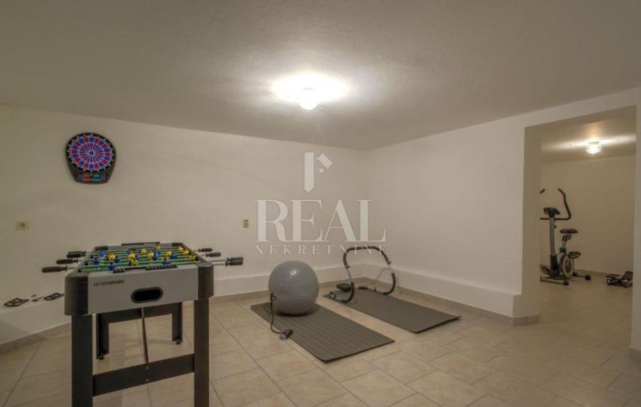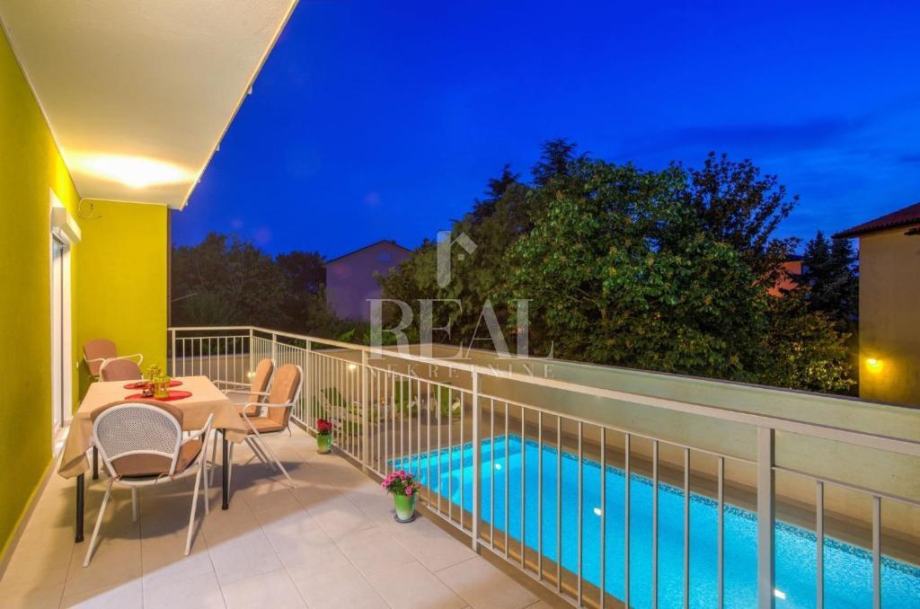 Objekt se nalazi u Puli, na svega 2,4 km od plaže Pješčana uvala,te ima 220m2 stambenog prostora raspoređenih na suteren,prizemlje i prvi kat. U visokom prizemlju se nalazi ugodan dnevni boravak s izlazom na balkon koji ima pogled na bazen, kao odlična lokacija za jutarnju kavu. Na dnevni boravak se nastavljaju prostrana blagovaonica te potpuno opremljena kuhinja s dodatnim stolom, u tipu poluotvorenog tlocrta sa slobodnim prolazom. Prvi kat, gdje se nalaze preostale 4 spavaće sobe i jedna kupaonica, nudi pogodnosti u vidu velikog balkona s pogledom na terasu i bazen.Sprave za vježbanje ,stolni nogomet i pikado se nalaze u suterenu, gdje je smještena i treća kupaonica. U ovoj vili su privatnost i komfor stavljeni na prioritetno mjesto, obzirom da ima privatni parking, te je dvorište potpuno ograđeno.