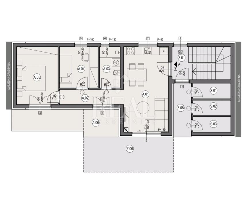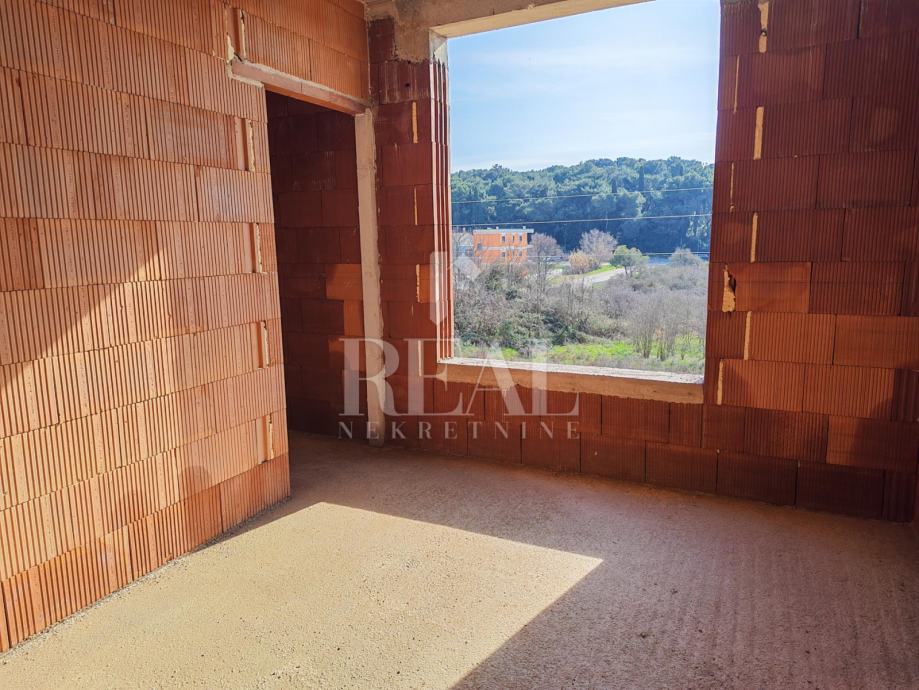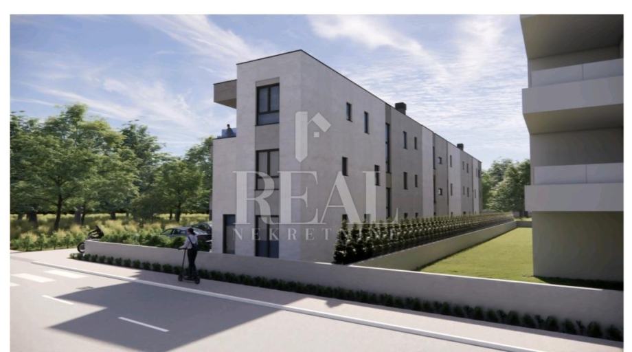 Pula, novogradnja blizu Citty mall-a manja zgrada na mirnoj lokaciji . Stan se nalazi u prizemlje te ima svoj pripadajući vrt od 50m2. Stambena površina je 55m2 a sastoji se od kuhinje i dnevnog dijela, kupaonice, ulaznog hodnika , dvije spavaće sobe te veće terase. Stanu pripada spremište i vanjsko parkirno mjesto. Useljenje do kraja godine. Grijanje i hlađenje putem klima uređaja.
