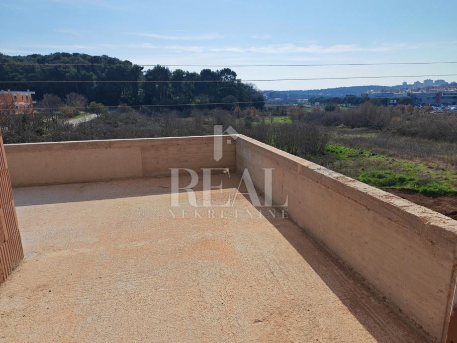 Pula, novogradnja blizu Citty mall-a manja zgrada na mirnoj lokaciji . Stan se nalazi na 1. katu te 75m2 stambene površine a sastoji se od kuhinje i dnevnog dijela, kupaonice, ulaznog hodnika , tri spavaće sobe te veće terase. Stanu pripada spremište i vanjsko parkirno mjesto. Useljenje do kraja godine. Grijanje i hlađenje putem klima uređaja.