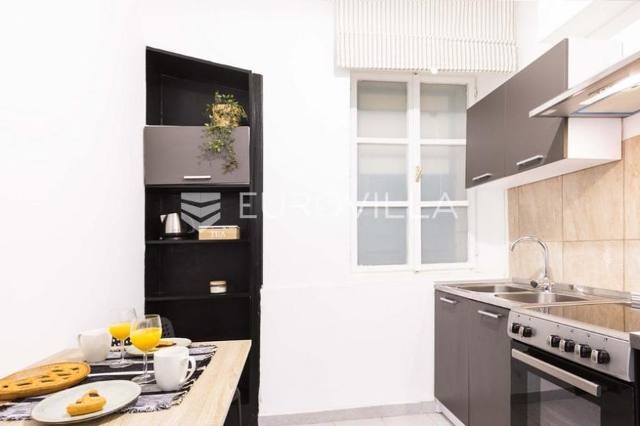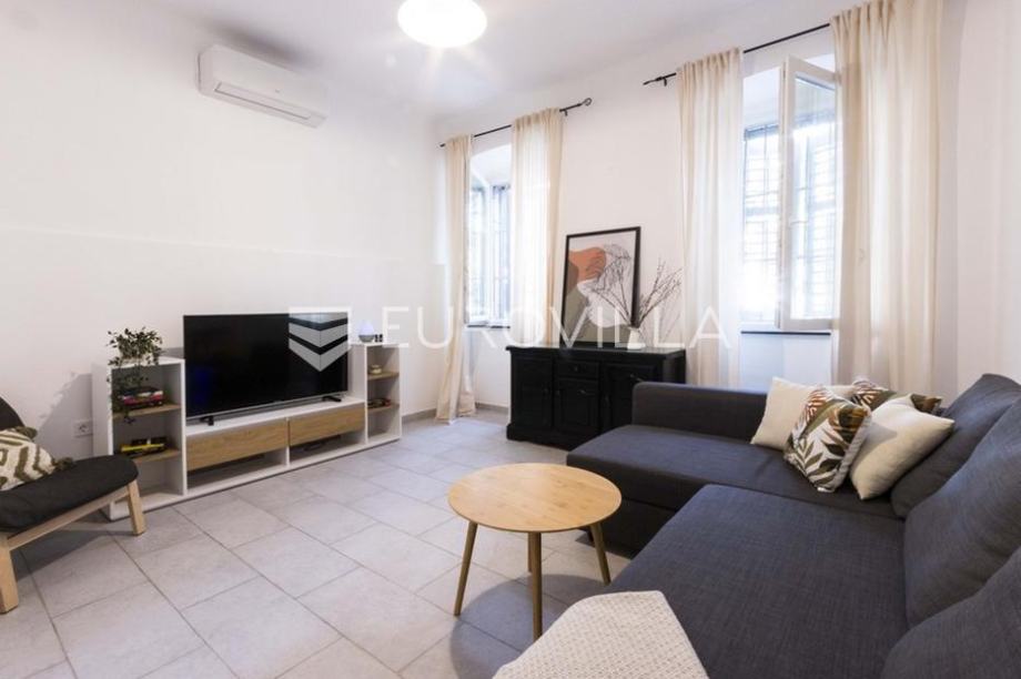 Exclusive sale of this beautiful and furnished apartment located on the ground floor of a residential building with only a few tenants, in a prime location near the pedestrian zone and the Pula amphitheater itself. The total area is 45.48 m2 and consists of: entrance hall, living room, kitchen,...