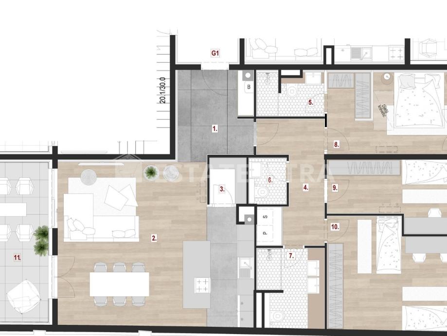 Luksuzni stanovi veličine 130,31 m2 na 1. 2. i 3. katu novogradnje, izgrađene po principu Smart Home sustav Beehive SG.