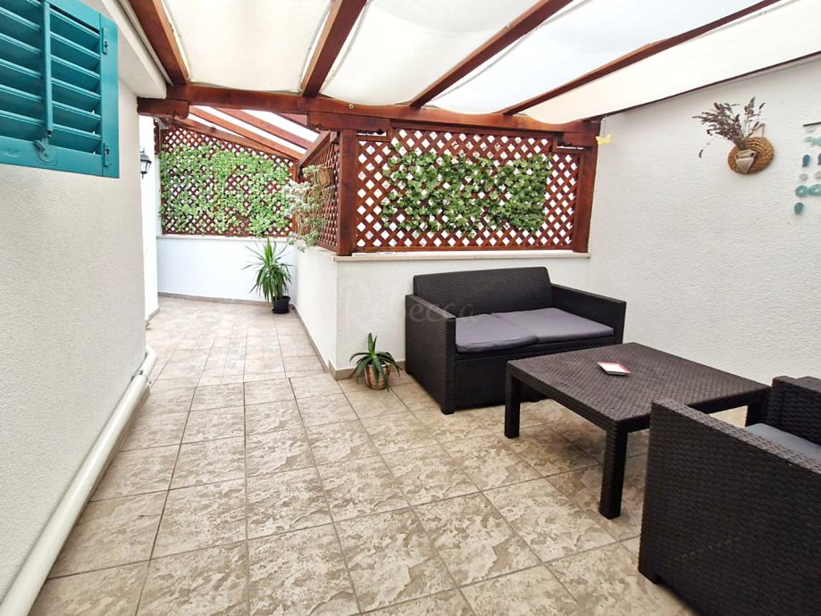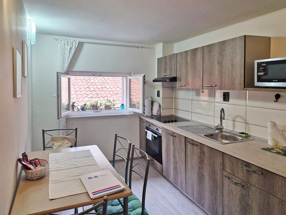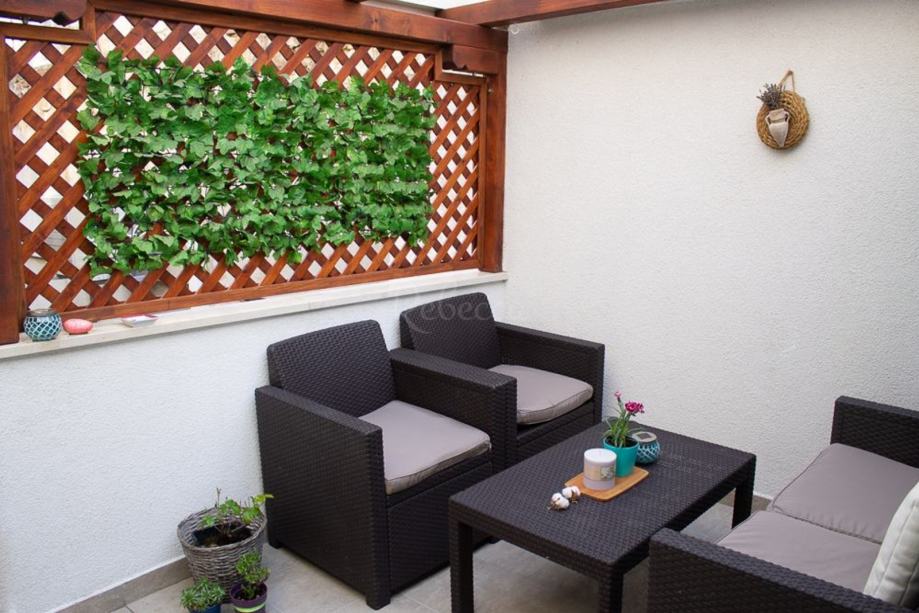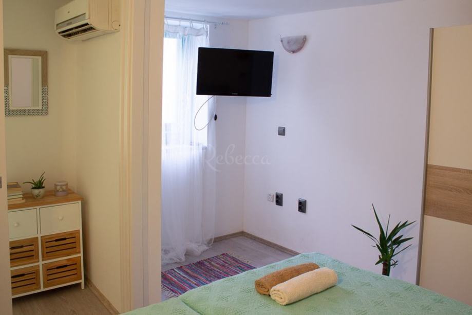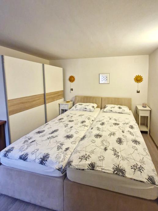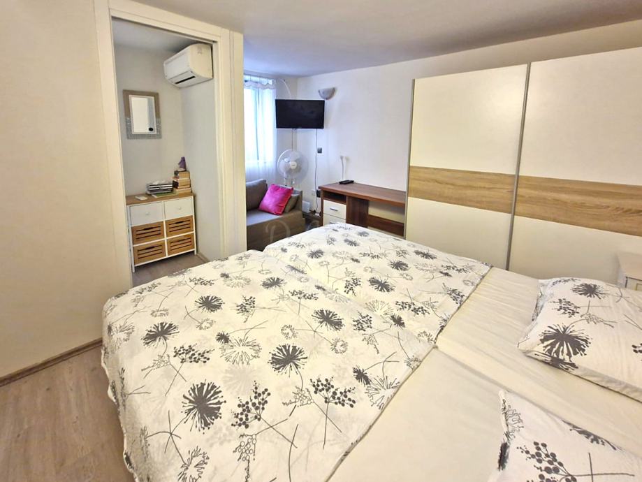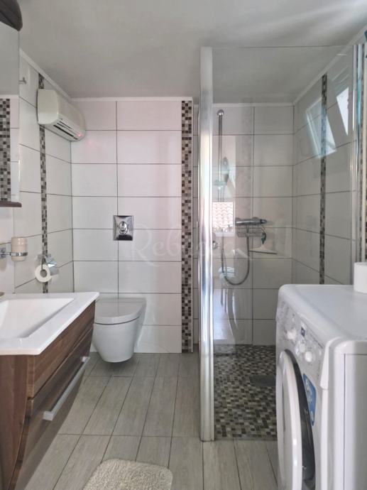 Dodatni sadržaji uključuju gostinjski WC, dva klima uređaja i dimnjak, čime je stan prilagođen svim vremenskim uvjetima. Svi namještaj i uređaji dolaze zajedno s nekretninom, što olakšava useljenje.